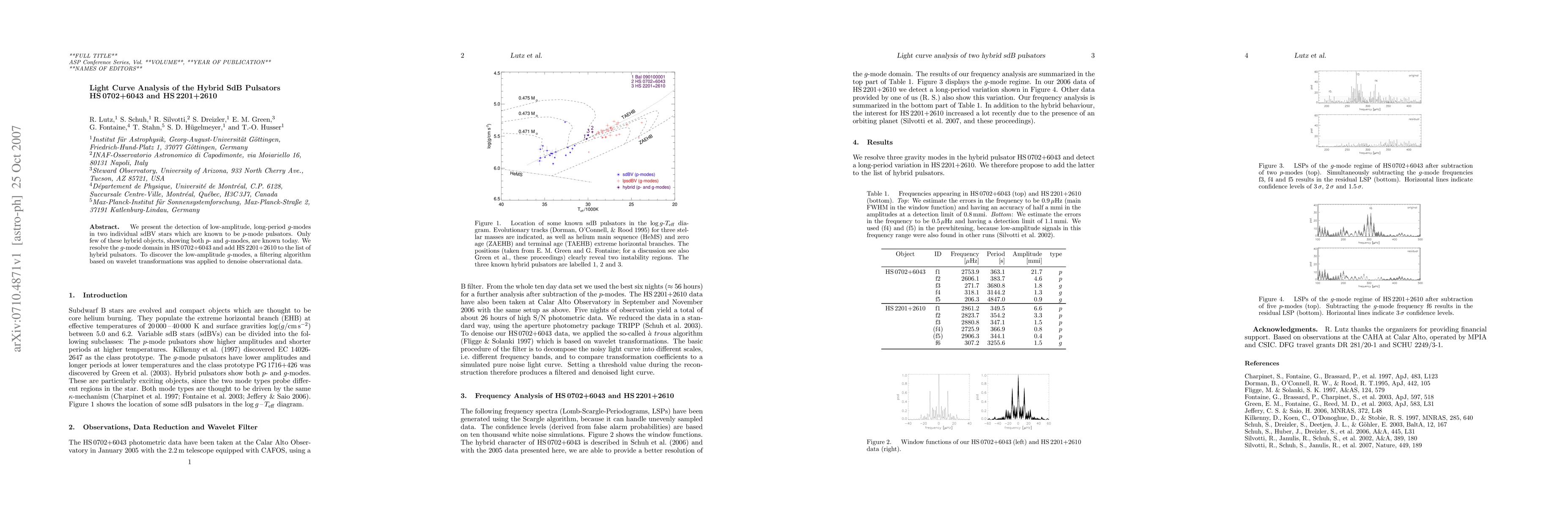 This paper reports the detection of low-amplitude, long-period g-mode pulsations in two hybrid sdBV pulsators, HS0702+6043 and HS2201+2610, which are known for their p-mode pulsations. The study utilized a wavelet transformation-based filtering algorithm to identify these g-modes in observational data.