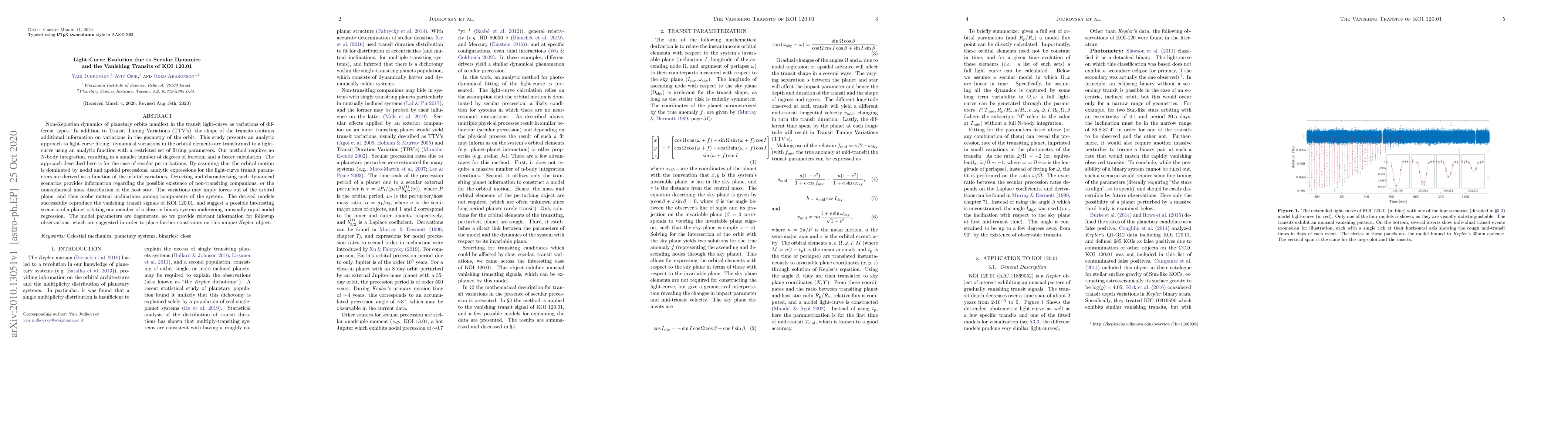 Non-Keplerian dynamics of planetary orbits manifest in the transit light-curve as variations of different types. In addition to Transit Timing Variations (TTV's), the shape of the transits contains additional information on variations in the geometry of the orbit. This study presents an analytic approach to light-curve fitting: dynamical variations in the orbital elements are transformed to a light-curve using an analytic function with a restricted set of fitting parameters. Our method requires no N-body integration, resulting in a smaller number of degrees of freedom and a faster calculation. The approach described here is for the case of secular perturbations. By assuming that the orbital motion is dominated by nodal and apsidal precessions, analytic expressions for the light-curve transit parameters are derived as a function of the orbital variations. Detecting and characterizing such dynamical scenarios provides information regarding the possible existence of non-transiting companions, or the non-spherical mass distribution of the host star. The variations may imply forces out of the orbital plane, and thus probe mutual inclinations among components of the system. The derived models successfully reproduce the vanishing transit signals of KOI 120.01, and suggest a possible interesting scenario of a planet orbiting one member of a close-in binary system undergoing unusually rapid nodal regression. The model parameters are degenerate, so we provide relevant information for followup observations, which are suggested in order to place further constraints on this unique Kepler object.