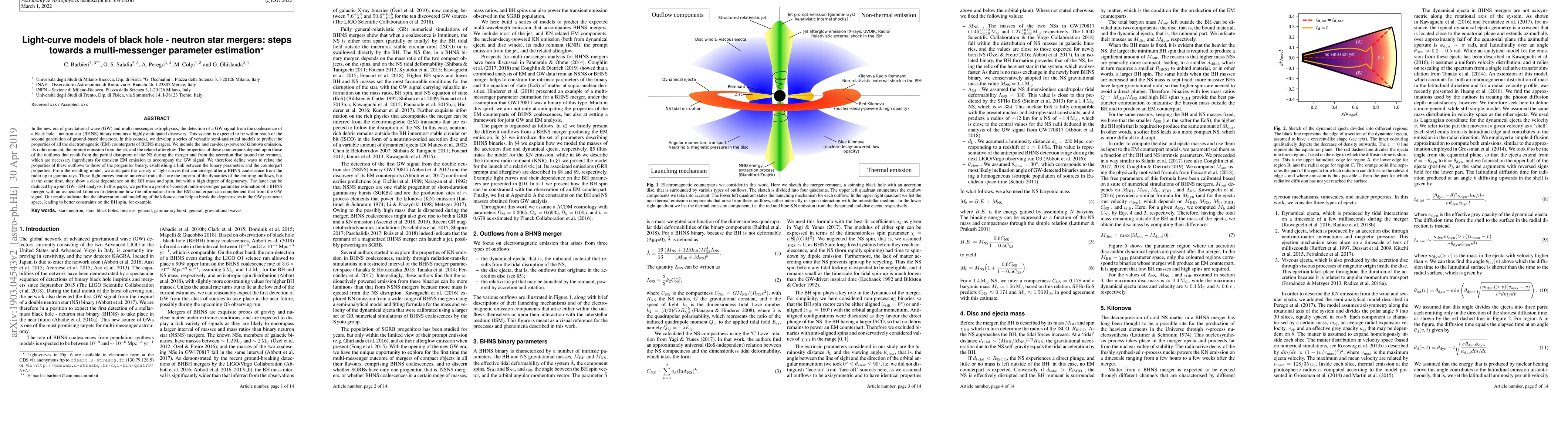 In the new era of gravitational wave (GW) and multi-messenger astrophysics, the detection of a GW signal from the coalescence of a black hole - neutron star (BHNS) binary remains a highly anticipated discovery. This kind of system is expected to be within reach of the second generation of ground-based detectors. In this context, we develop a series of versatile semi-analytical models to predict the properties of all the electromagnetic (EM) counterparts of BHNS mergers. We include the nuclear-decay-powered kilonova emission, its radio remnant, the prompt emission from the jet and the related afterglow. The properties of these counterparts depend upon those of the outflows that result from the partial disruption of the NS during the merger and from the accretion disc around the remnant, which are necessary ingredients for transient EM emission to accompany the GW signal. We therefore define ways to relate the properties of these outflows to those of the progenitor binary, establishing a link between the binary parameters and the counterpart properties. From the resulting model, we anticipate the variety of light curves that can emerge after a BHNS coalescence, from the radio up to gamma-rays. These light curves feature universal traits which are the imprint of the dynamics of the emitting outflows, but at the same time they show a clear dependence on the BH mass and spin, though with a high degree of degeneracy. The latter can be deduced by joint GW - EM analysis. In this paper, we perform a proof-of-concept multi-messenger parameter estimation of a BHNS merger with an associated kilonova, to test how the information from the EM counterpart can complement that from the GW signal. Our results indicate that the observation and modeling of the kilonova can help to break the degeneracies in the GW parameter space, leading to better constraints on, e.g., the BH spin.