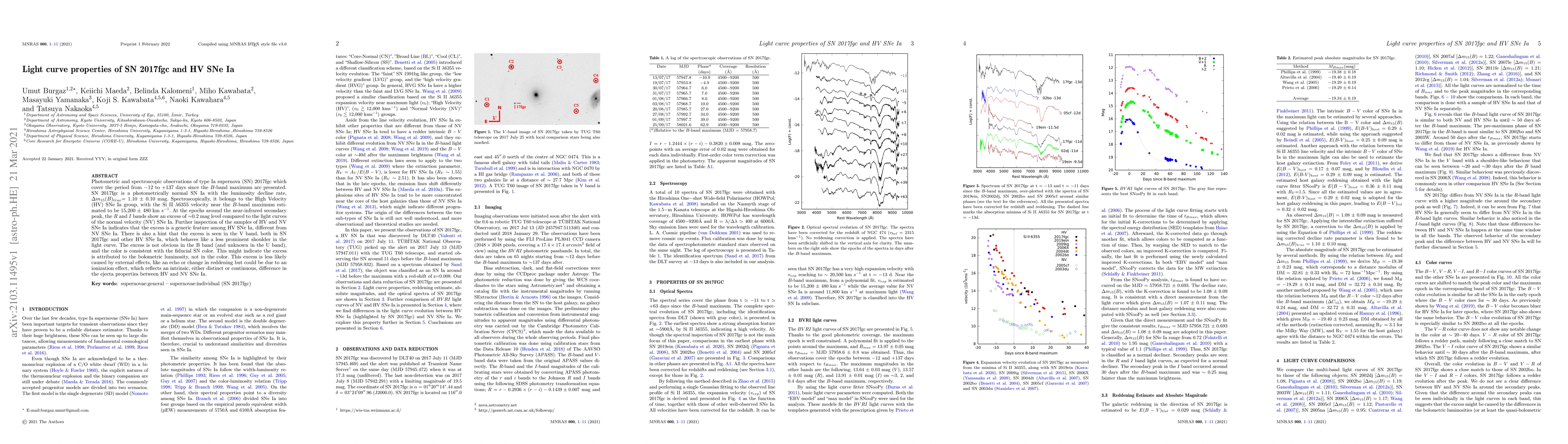 Photometric and spectroscopic observations of type Ia supernova (SN) 2017fgc which cover the period from $-$12 to +137 days since the $B$-band maximum are presented. SN 2017fgc is a photometrically normal SN Ia with the luminosity decline rate, $ \Delta m_{15} (B)_{true} $= 1.10 $ \pm $ 0.10 mag. Spectroscopically, it belongs to the High Velocity (HV) SNe Ia group, with the Si II $\lambda$6355 velocity near the $B$-band maximum estimated to be 15,200 $ \pm $ 480 km $s^{-1}$. At the epochs around the near-infrared secondary peak, the $R$ and $I$ bands show an excess of $\sim$0.2 mag level compared to the light curves of the normal velocity (NV) SNe Ia. Further inspection of the samples of HV and NV SNe Ia indicates that the excess is a generic feature among HV SNe Ia, different from NV SNe Ia. There is also a hint that the excess is seen in the V band, both in SN 2017fgc and other HV SNe Ia, which behaves like a less prominent shoulder in the light curve. The excess is not obvious in the B band (and unknown in the U band), and the color is consistent with the fiducial SN color. This might indicate the excess is attributed to the bolometric luminosity, not in the color. This excess is less likely caused by external effects, like an echo or change in reddening but could be due to an ionization effect, which reflects an intrinsic, either distinct or continuous, difference in the ejecta properties between HV and NV SNe Ia.