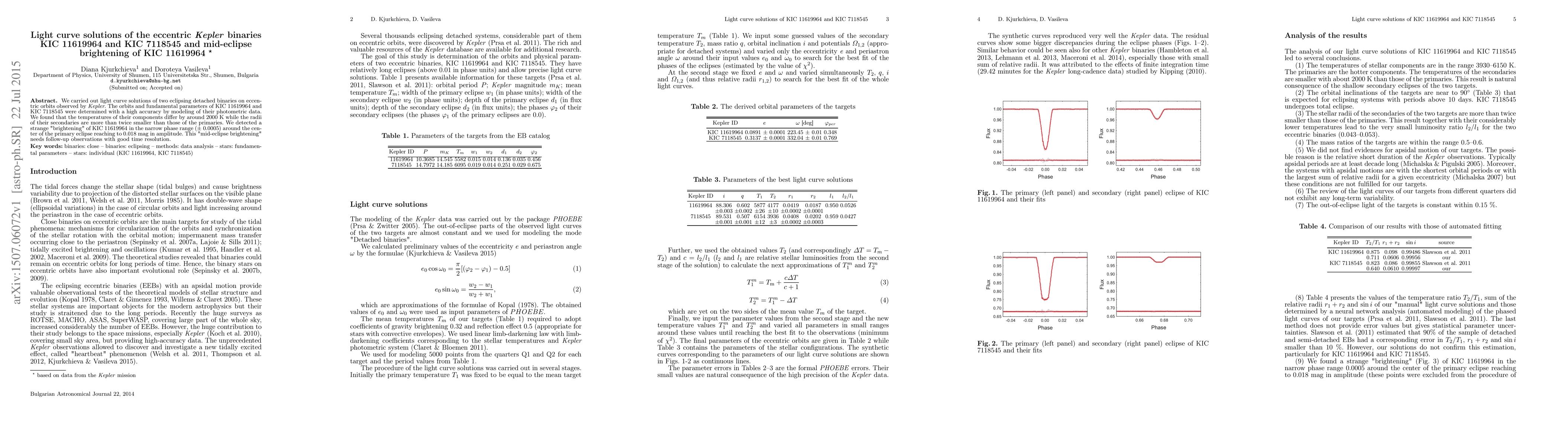 This study models the light curves of two eccentric Kepler binaries, KIC 11619964 and KIC 7118545, revealing significant differences in component temperatures and secondary radii. Notably, KIC 11619964 exhibits an unusual "mid-eclipse brightening" phenomenon requiring further high-resolution observations.