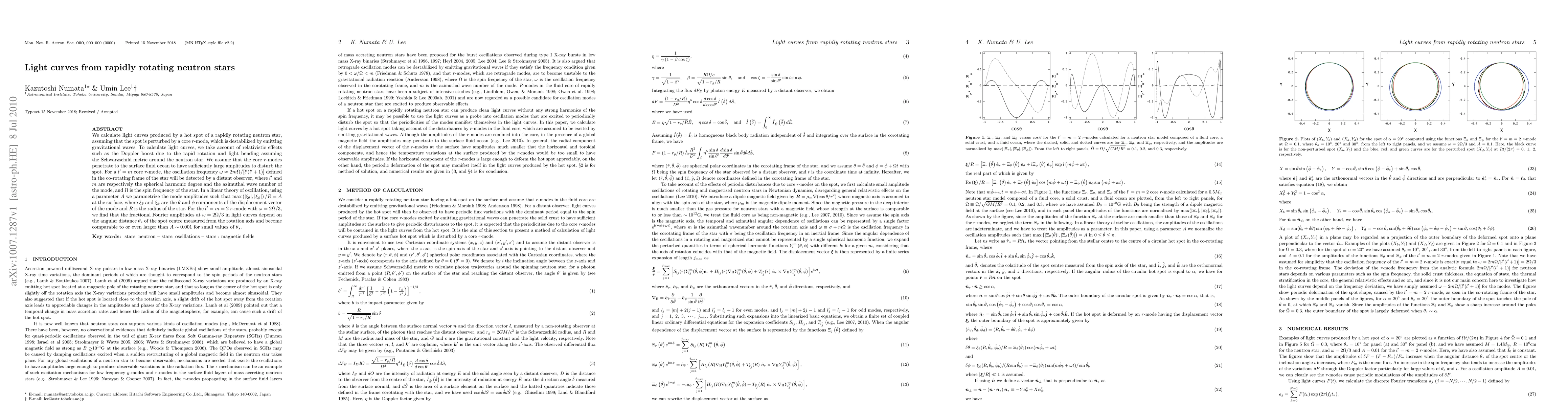 This paper calculates light curves from rapidly rotating neutron stars, considering a hot spot perturbed by destabilized core $r$-modes emitting gravitational waves. It accounts for relativistic effects like Doppler boost and light bending, finding that the oscillation amplitudes can be significant for certain modes.