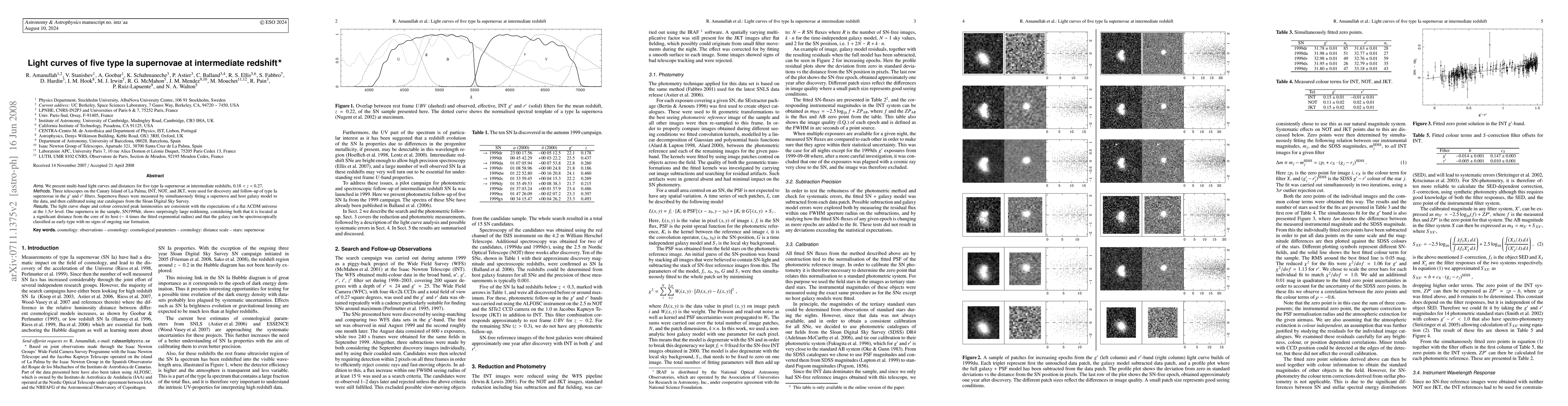 This paper presents multi-band light curves for five type Ia supernovae at intermediate redshifts, observed using telescopes in La Palma. The study finds consistent peak luminosities supporting a flat LambdaCDM universe, with one supernova showing unusually high reddening despite its location in an early-type galaxy.