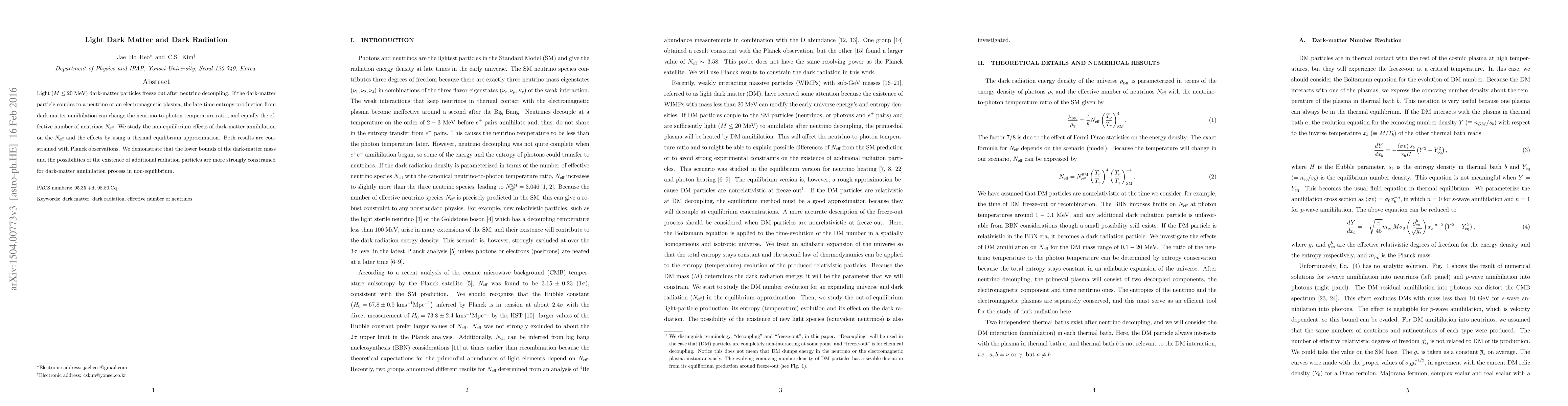 This paper investigates the non-equilibrium effects of light dark matter particles on the effective number of neutrinos ($N_{eff}$) through annihilation processes, finding stronger constraints on dark matter mass and potential dark radiation compared to thermal equilibrium models, using Planck observations for constraints.