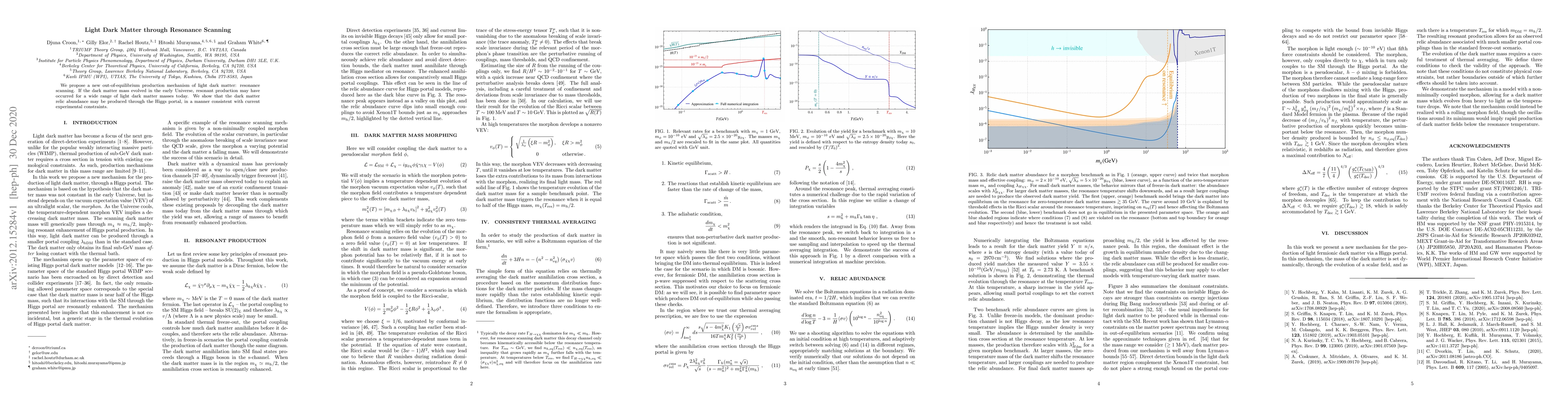This paper introduces a novel out-of-equilibrium production mechanism called resonance scanning for light dark matter, suggesting that its mass could have varied in the early Universe, potentially leading to resonant production across a wide range of current masses. The proposed mechanism is consistent with the relic abundance of dark matter produced via the Higgs portal and aligns with existing experimental constraints.