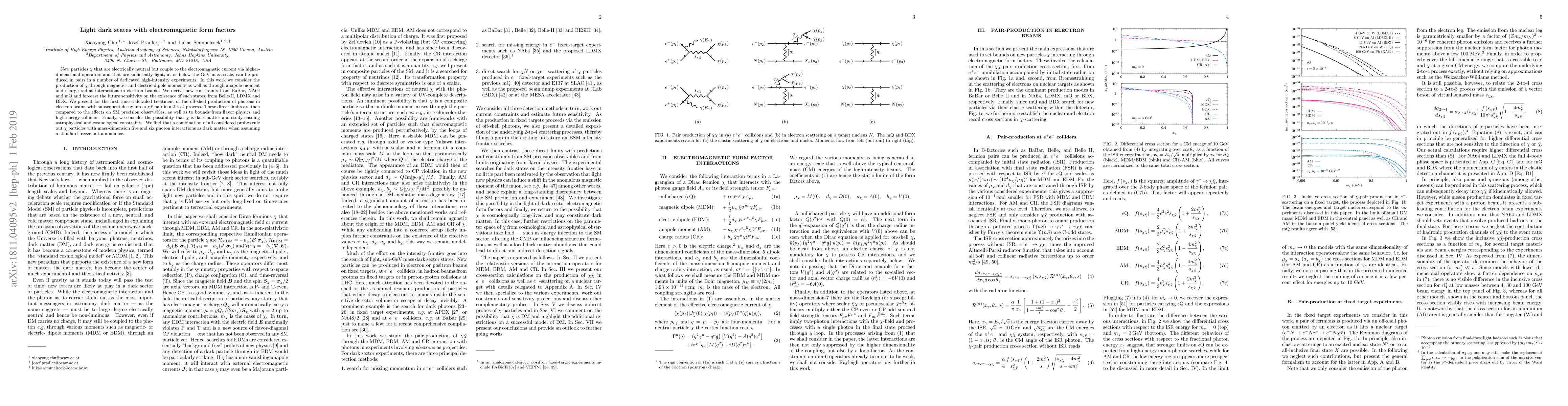 Researchers investigate the production of hypothetical particles with electromagnetic form factors that could be produced in high-energy experiments and explore their potential as dark matter candidates.