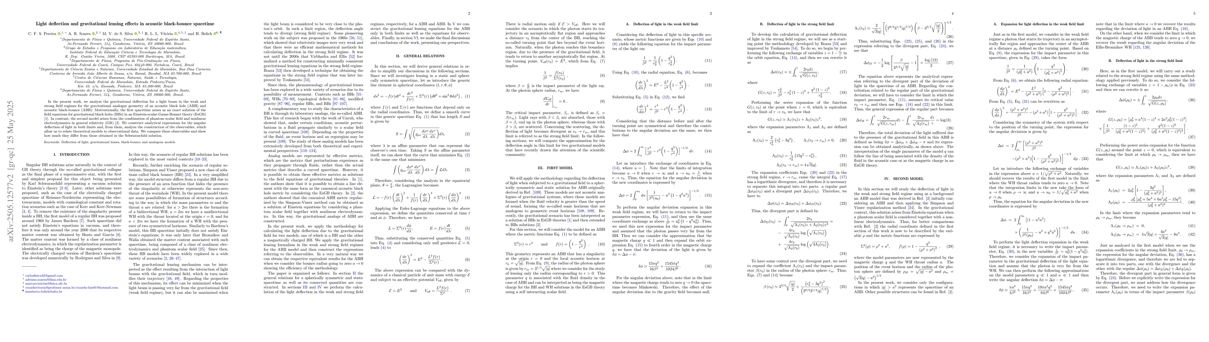 The research analyzes gravitational deflection of light in weak and strong field regimes for acoustic black hole (ABH) and acoustic black-bounce (ABB) spacetimes, deriving analytical expressions for angular deflection and comparing observables to Schwarzschild solution.