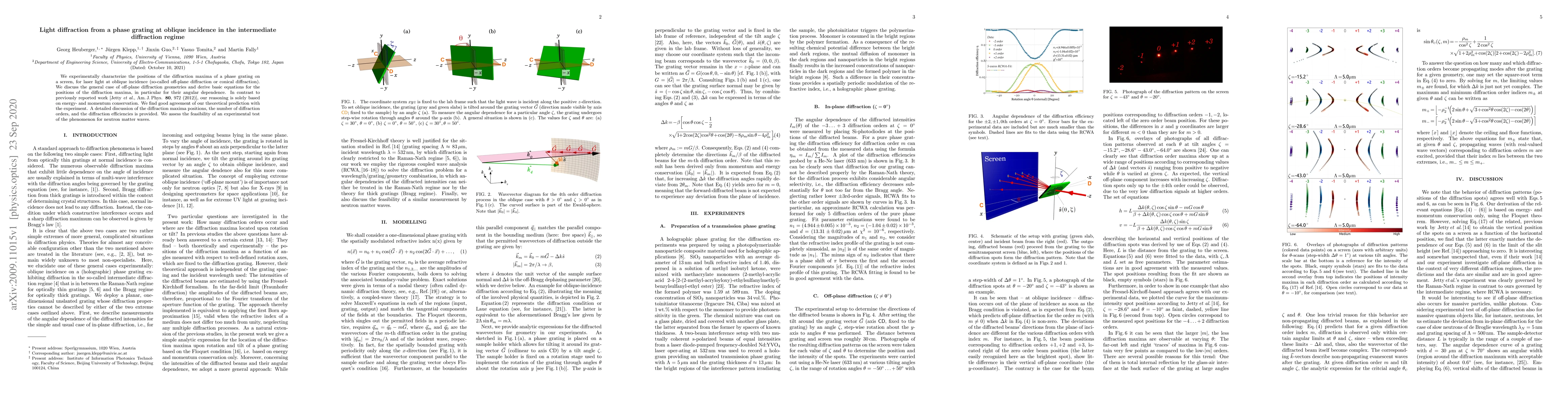 This paper experimentally characterizes the diffraction maxima of a phase grating under oblique incidence, deriving equations based on energy- and momentum conservation. The study finds good agreement between theoretical predictions and experimental results, and discusses the potential for testing the phenomenon with neutron matter waves.