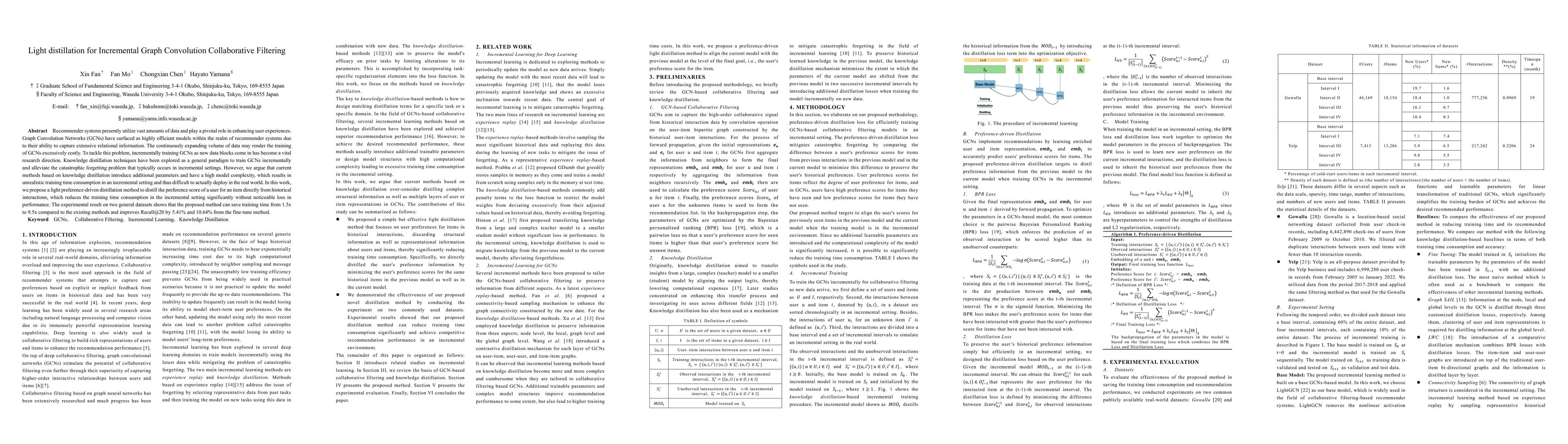 This paper proposes a lightweight method for incremental graph convolution collaborative filtering using preference-driven distillation, reducing training time consumption without compromising performance.