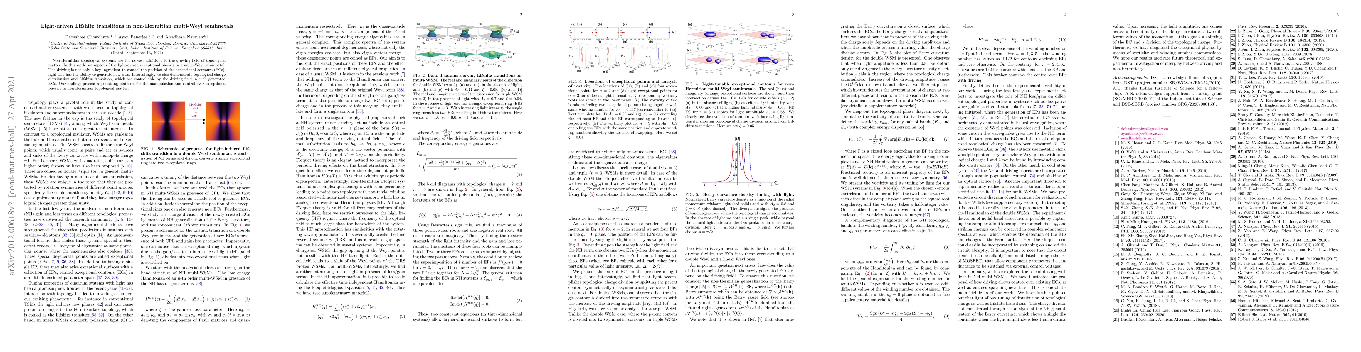 Non-Hermitian topological systems are the newest additions to the growing field of topological matter. In this work, we report of the light-driven exceptional physics in a multi-Weyl semi-metal. The driving is not only a key ingredient to control the position of the exceptional contours (ECs), light also has the ability to generate new ECs. Interestingly, we also demonstrate topological charge distribution and Lifshitz transition, which are controllable by the driving field in such generated ECs. Our findings present a promising platform for the manipulation and control over exceptional physics in non-Hermitian topological matter.