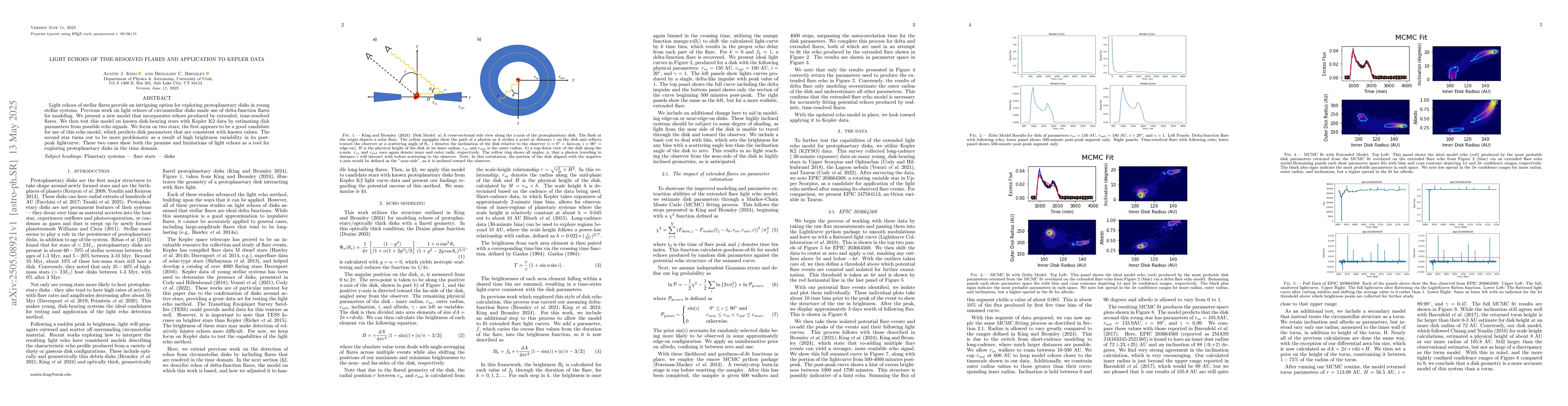 The research presents a new model for light echoes of extended, time-resolved flares, applied to Kepler K2 data of known disk-bearing stars to estimate disk parameters from possible echo signals.