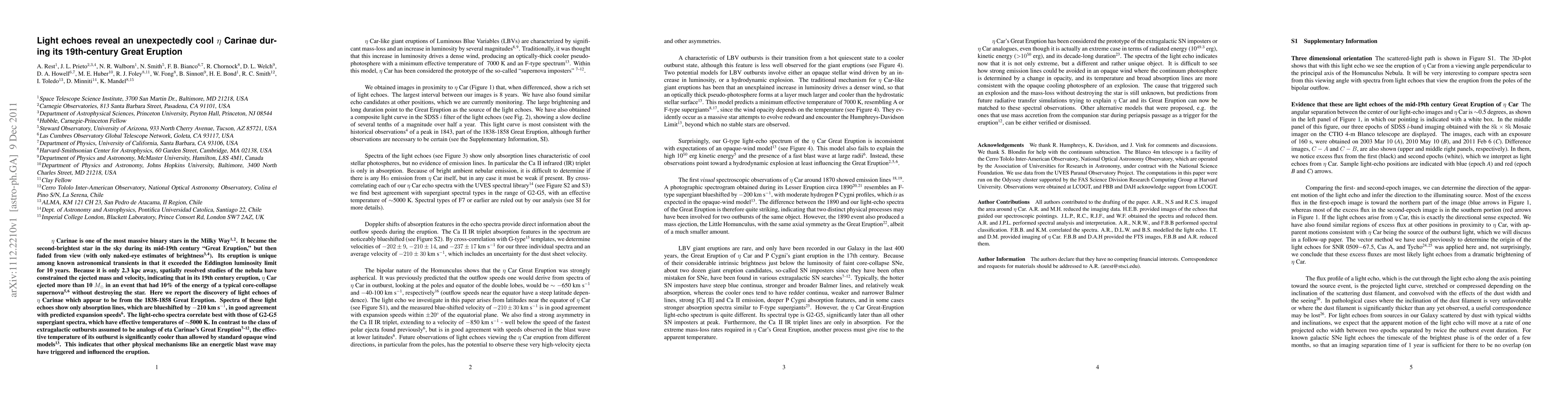 This paper reveals light echoes from Eta Carinae's 19th-century Great Eruption, showing spectra consistent with cooler G2-G5 supergiant stars, challenging standard models and suggesting an energetic blast wave may have driven the eruption. The findings indicate that Eta Carinae's eruption was cooler than previously thought, indicating alternative mechanisms beyond typical opaque wind models.