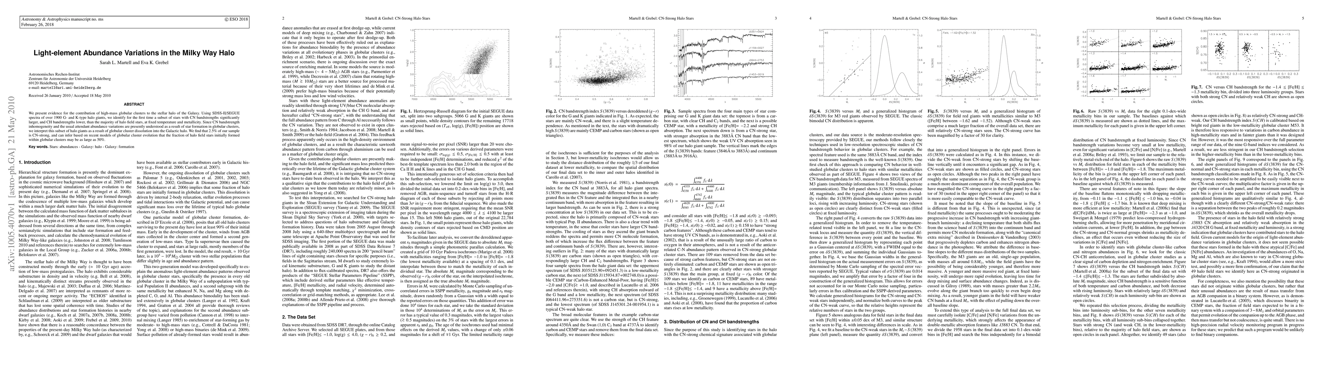 We present evidence for the contribution of high-mass globular clusters to the stellar halo of the Galaxy. Using SDSS-II/SEGUE spectra of over 1900 G- and K-type halo giants, we identify for the first time a subset of stars with CN bandstrengths significantly larger, and CH bandstrengths lower, than the majority of halo field stars, at fixed temperature and metallicity. Since CN bandstrength inhomogeneity and the usual attendant abundance variations are presently understood as a result of star formation in globular clusters, we interpret this subset of halo giants as a result of globular cluster dissolution into the Galactic halo. We find that 2.5% of our sample is CN-strong, and can infer based on recent models of globular cluster evolution that the fraction of halo field stars initially formed within globular clusters may be as large as 50%.