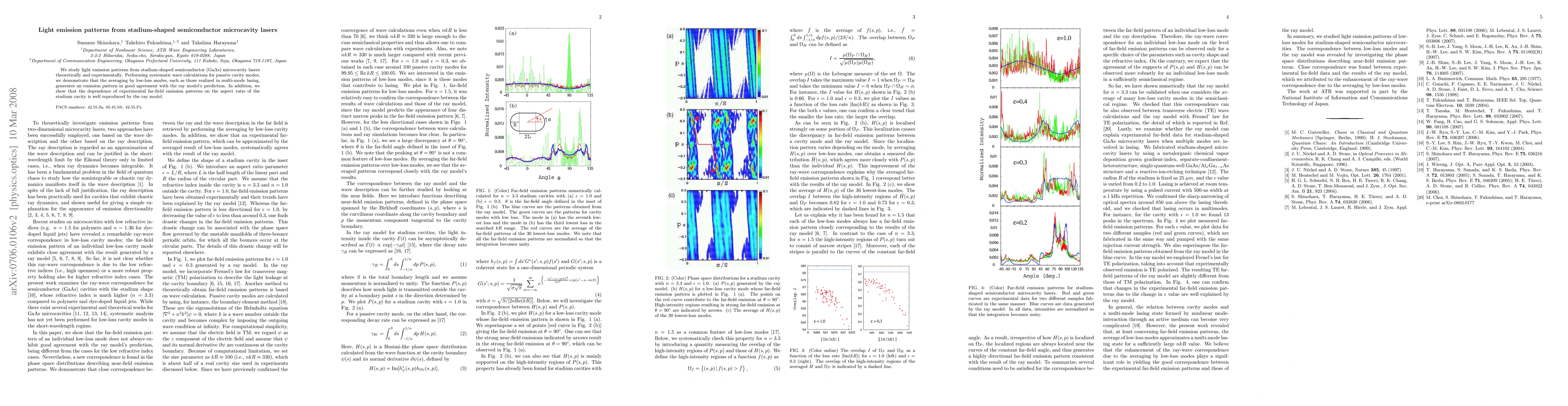 This paper investigates light emission patterns from stadium-shaped GaAs microcavity lasers both theoretically and experimentally. The study finds that multi-mode lasing generates emission patterns consistent with ray model predictions, and experimental results match the ray model's dependence on the cavity's aspect ratio.