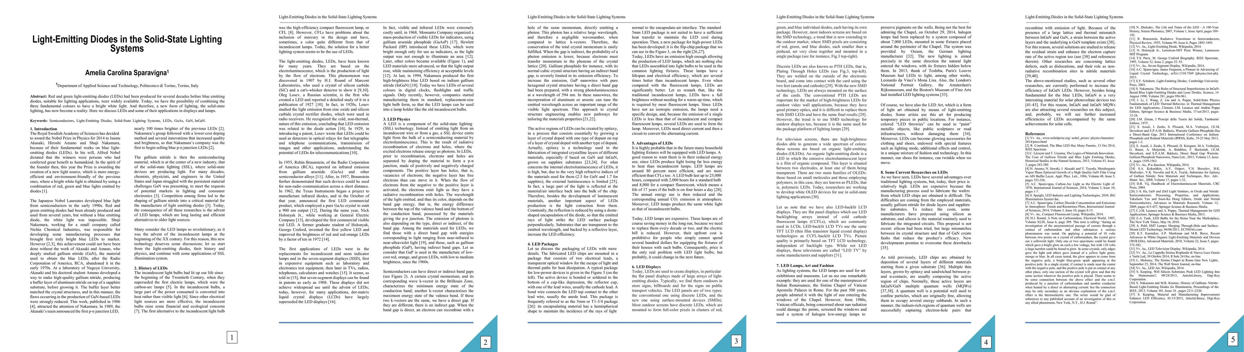 This paper discusses the development of red, green, and blue light-emitting diodes (LEDs) that have enabled the creation of bright white light through solid-state lighting, highlighting their applications in displays and lamps.