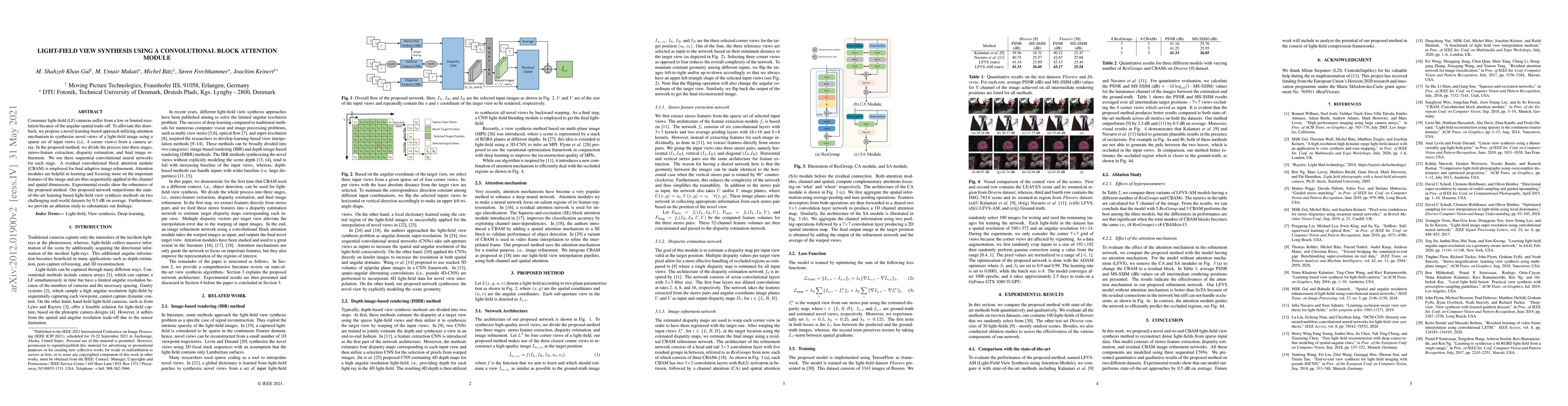 This paper presents a novel learning-based approach for synthesizing high-resolution novel views from sparse light-field input using convolutional block attention modules (CBAM). The method outperforms existing techniques, achieving better results on real-world datasets and demonstrating the effectiveness of attention mechanisms in enhancing feature extraction.
