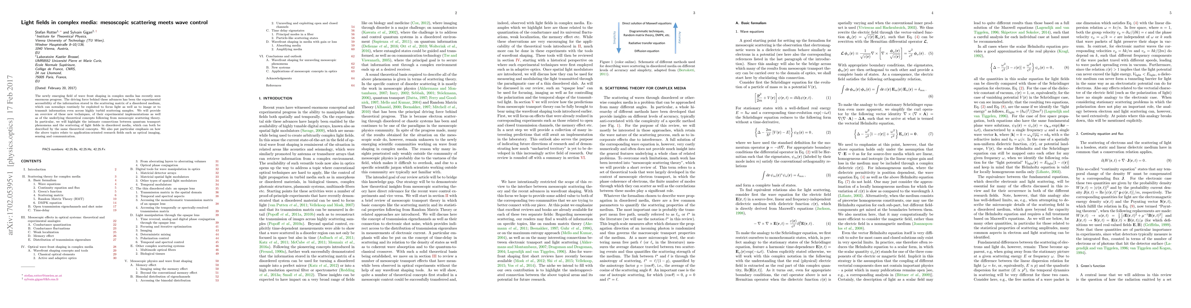 The newly emerging field of wave front shaping in complex media has recently seen enormous progress. The driving force behind these advances has been the experimental accessibility of the information stored in the scattering matrix of a disordered medium, which can nowadays routinely be exploited to focus light as well as to image or to transmit information even across highly turbid scattering samples. We will provide an overview of these new techniques, of their experimental implementations as well as of the underlying theoretical concepts following from mesoscopic scattering theory. In particular, we will highlight the intimate connections between quantum transport phenomena and the scattering of light fields in disordered media, which can both be described by the same theoretical concepts. We also put particular emphasis on how the above topics relate to application-oriented research fields such as optical imaging, sensing and communication.