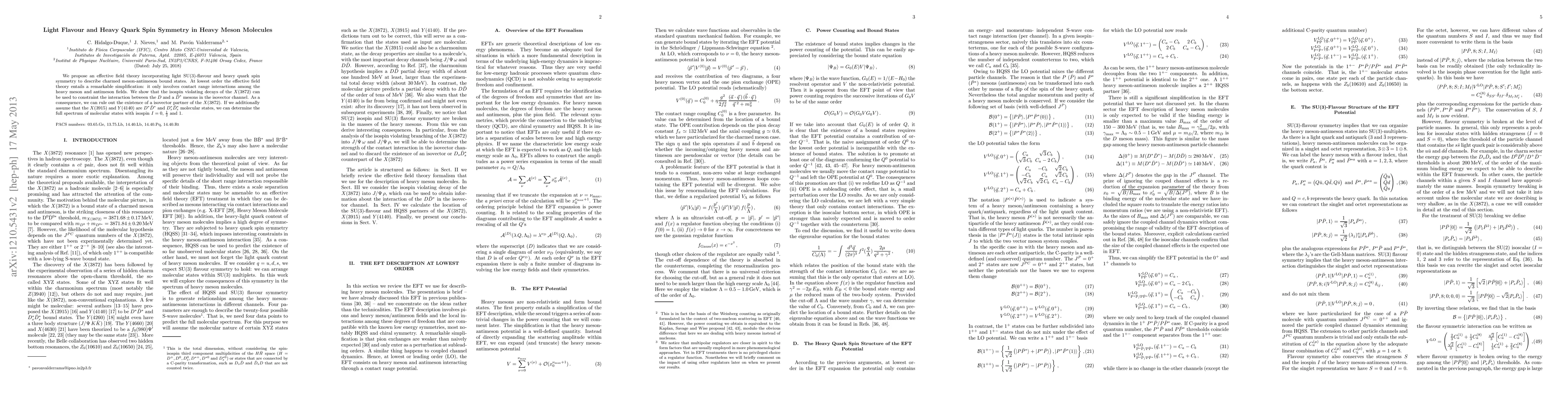 We propose an effective field theory incorporating light SU(3)-flavour and heavy quark spin symmetry to describe charmed meson-antimeson bound states. At lowest order the effective field theory entails a remarkable simplification: it only involves contact range interactions among the heavy meson and antimeson fields. We show that the isospin violating decays of the X(3872) can be used to constraint the interaction between the $D$ and a $\bar{D}^*$ mesons in the isovector channel. As a consequence, we can rule out the existence of a isovector partner of the X(3872). If we additionally assume that the X(3915) and Y(4140) are $D^*\bar{D}^*$ and $D_s^*\bar{D}_s^*$ molecular states, we can determine the full spectrum of molecular states with isospin I=0, 1/2 and 1.
