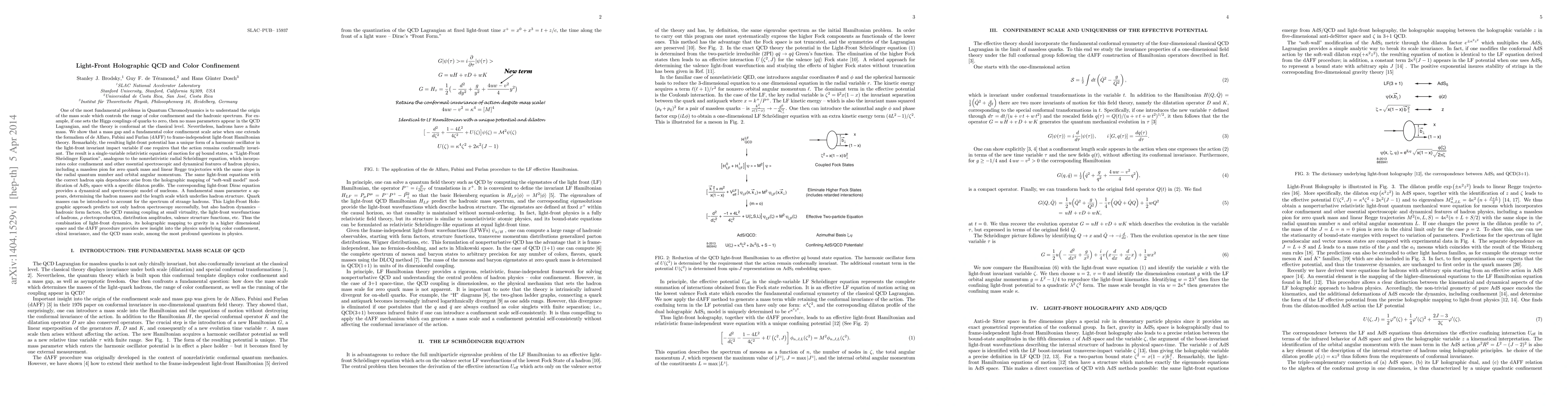One of the most fundamental problems in Quantum Chromodynamics is to understand the origin of the mass scale which controls the range of color confinement and the hadronic spectrum. We show that a mass gap and a fundamental color confinement scale arise when one extends the formalism of de Alfaro, Fubini and Furlan to frame-independent light-front Hamiltonian theory. Remarkably, the resulting light-front potential has a unique form of a harmonic oscillator in the light-front invariant impact variable if one requires that the action remains conformally invariant. The result is a single-variable relativistic equation of motion for $q \bar q$ bound states, a "Light-Front Shr\"odinger Equation", analogous to the nonrelativistic radial Schr\"odinger equation, which incorporates color confinement and other essential spectroscopic and dynamical features of hadron physics, including a massless pion for zero quark mass and linear Regge trajectories with the same slope in the radial quantum number and orbital angular momentum. The same equations with the correct hadron spin dependence arise from the holographic mapping of modified AdS$_5$ space with a specific dilaton profile. A fundamental mass parameter $\kappa$ appears, determining the hadron masses and the length scale which underlies hadron structure. Quark masses can be introduced to account for the spectrum of strange hadrons. This Light-Front Holographic approach predicts not only hadron spectroscopy successfully, but also hadronic form factors, the QCD running coupling at small virtuality, and the light-front wavefunctions of hadrons. Thus the combination of light-front dynamics, its holographic mapping to gravity in a higher-dimensional space and the dAFF procedure provides new insight into the physics underlying color confinement, chiral invariance, and the QCD mass scale.