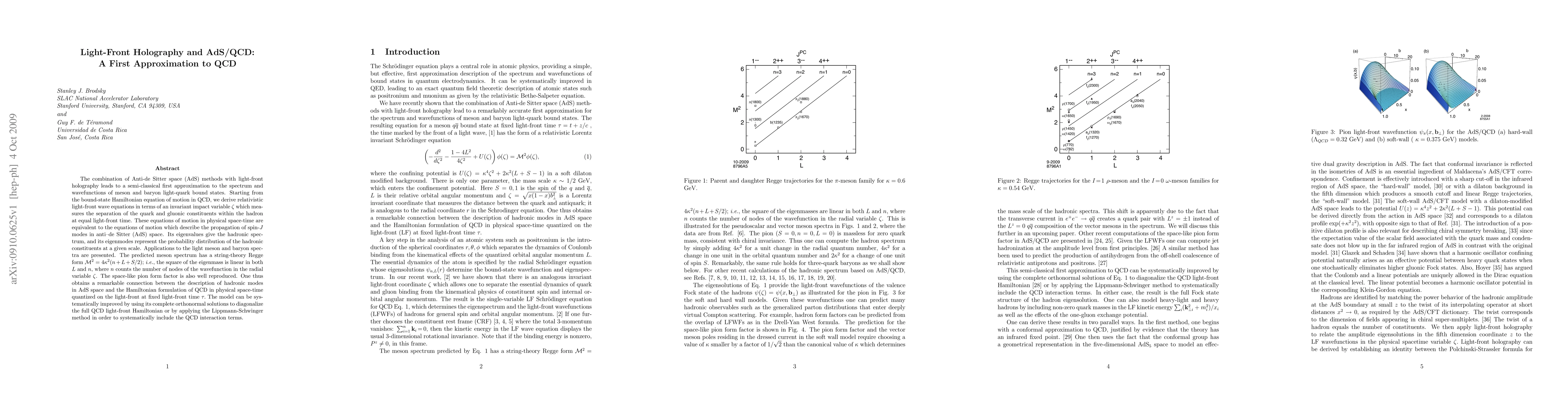 The paper derives relativistic light-front wave equations in AdS space from QCD light-front Hamiltonian equations, establishing a first approximation to hadronic spectra and wavefunctions.
