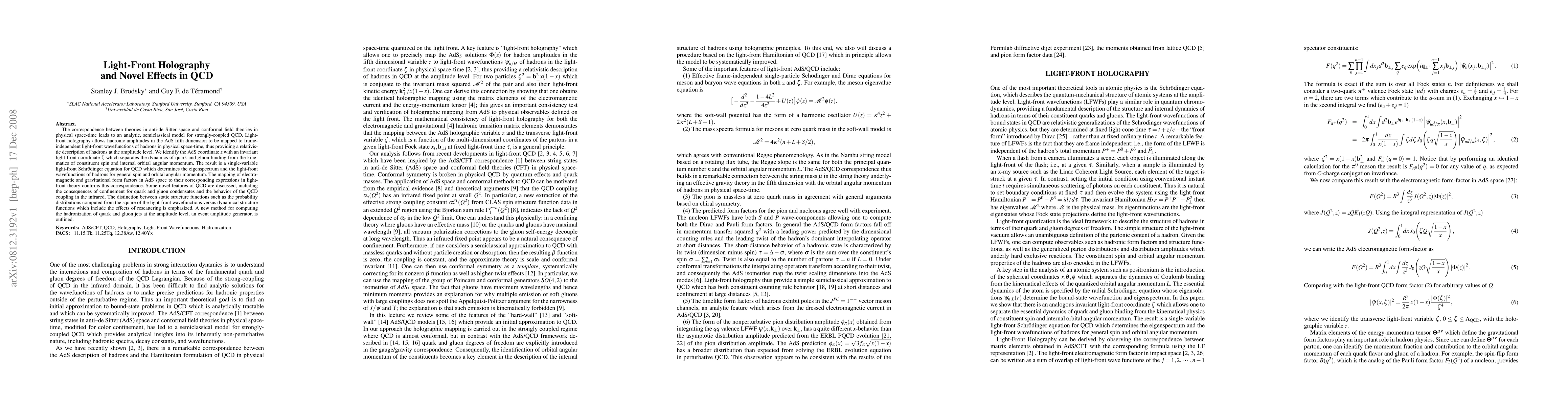 This paper explores light-front holography to develop a semiclassical model for strongly-coupled QCD, mapping hadronic amplitudes to light-front wavefunctions, and deriving a single-variable light-front Schrödinger equation. It highlights novel QCD features, including confinement effects and the infrared behavior of the QCD coupling, and introduces a new method for computing hadronization of quark and gluon jets.