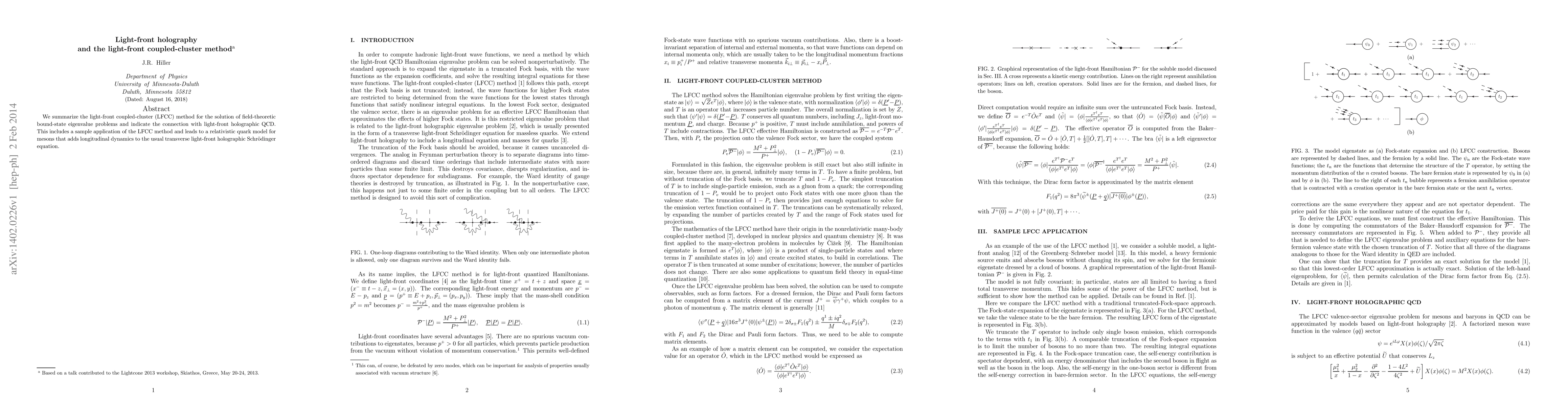 We summarize the light-front coupled-cluster (LFCC) method for the solution of field-theoretic bound-state eigenvalue problems and indicate the connection with light-front holographic QCD. This includes a sample application of the LFCC method and leads to a relativistic quark model for mesons that adds longitudinal dynamics to the usual transverse light-front holographic Schrodinger equation.