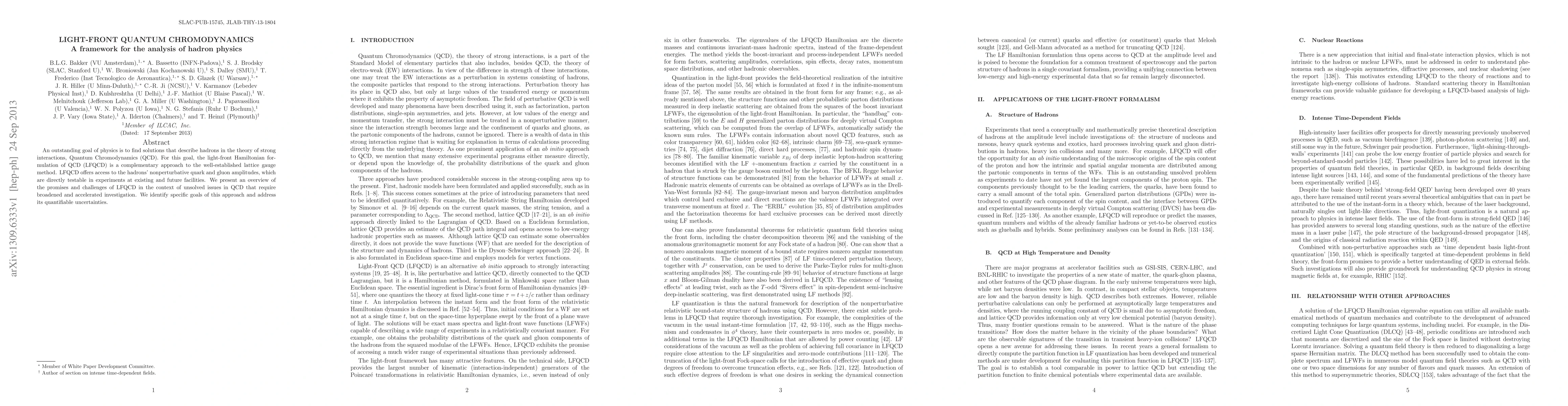 An outstanding goal of physics is to find solutions that describe hadrons in the theory of strong interactions, Quantum Chromodynamics (QCD). For this goal, the light-front Hamiltonian formulation of QCD (LFQCD) is a complementary approach to the well-established lattice gauge method. LFQCD offers access to the hadrons' nonperturbative quark and gluon amplitudes, which are directly testable in experiments at existing and future facilities. We present an overview of the promises and challenges of LFQCD in the context of unsolved issues in QCD that require broadened and accelerated investigation. We identify specific goals of this approach and address its quantifiable uncertainties.