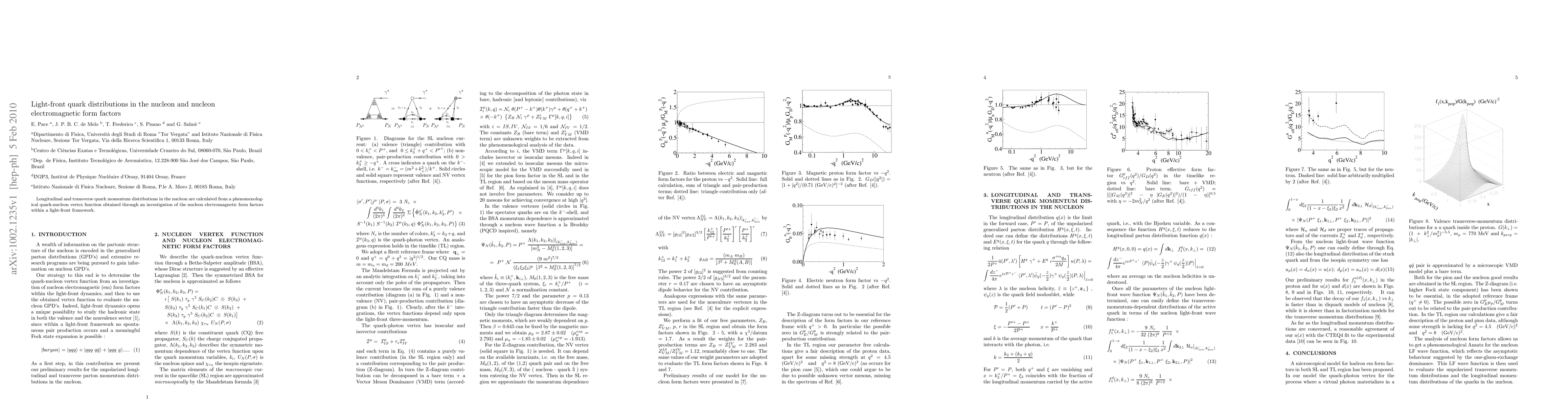 Summary: This research calculates longitudinal and transverse quark momentum distributions in nucleons using a phenomenological quark-nucleon vertex function derived from analyzing nucleon electromagnetic form factors within a light-front framework. The study aims to provide insights into the internal structure of nucleons.