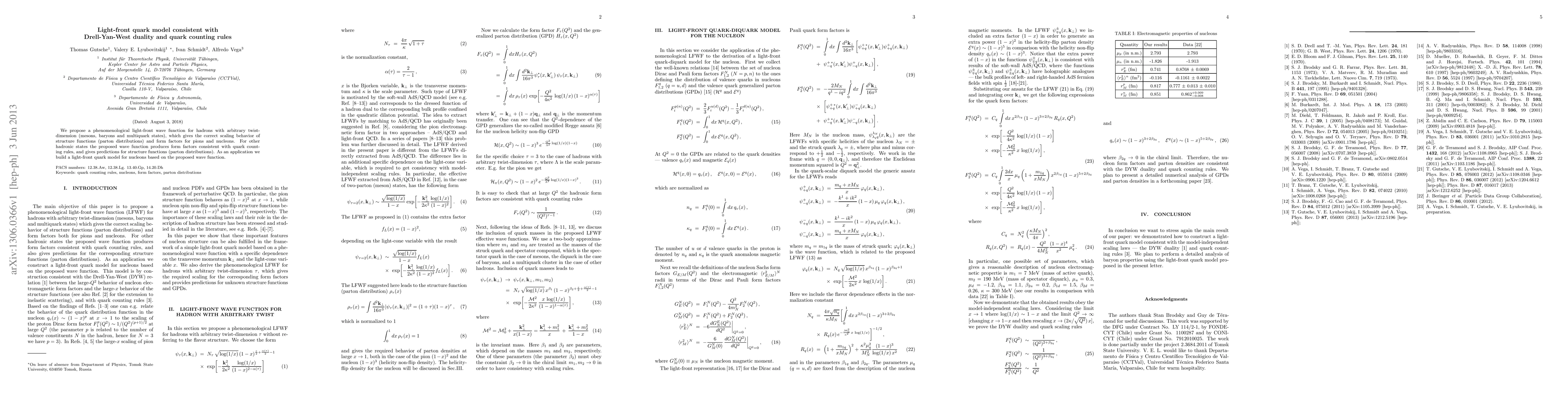 This paper proposes a light-front wave function for hadrons that aligns with Drell-Yan-West duality and quark counting rules, accurately predicting the scaling behavior of parton distributions and form factors for pions and nucleons. The model also provides predictions for other hadronic states and builds a light-front quark model for nucleons.