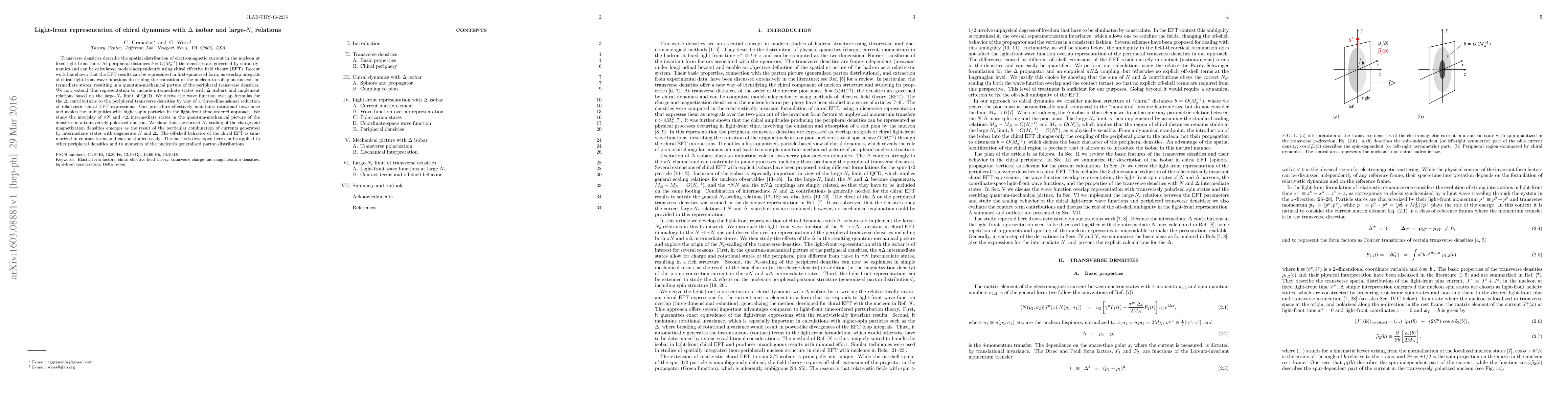 This paper extends the light-front representation of chiral dynamics to include Delta isobars and large-N_c relations, deriving wave function overlap formulas for Delta contributions to peripheral transverse densities. It demonstrates the interplay between pi-N and pi-Delta intermediate states, showing the correct N_c-scaling of charge and magnetization densities.