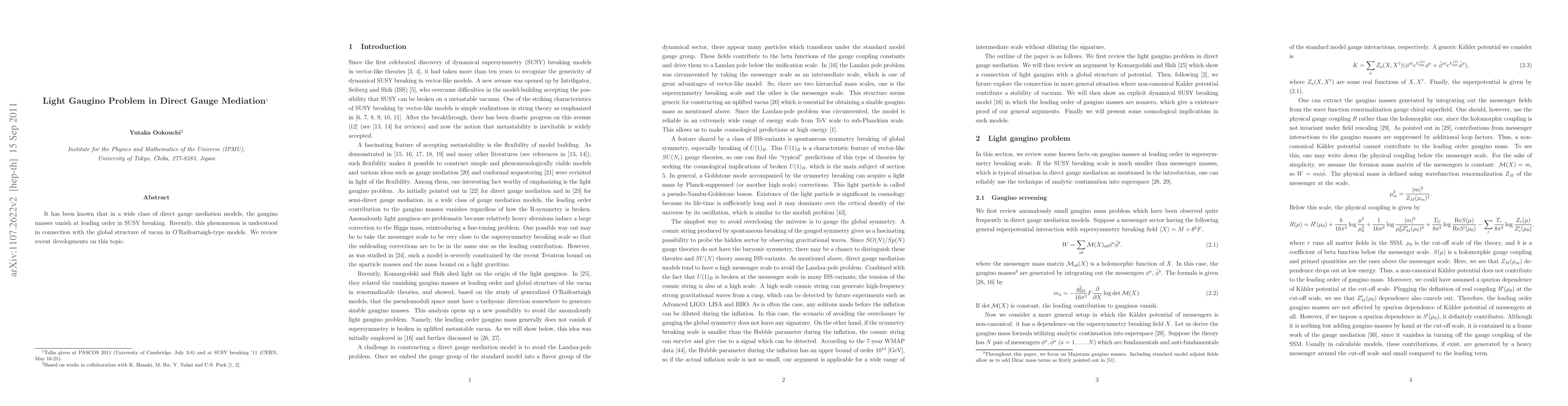 Summary: This paper reviews recent advancements in understanding the light gaugino problem in direct gauge mediation, where gaugino masses are negligible at leading order, and explores its connection to the global structure of vacua in O'Raifeartaigh-type models.