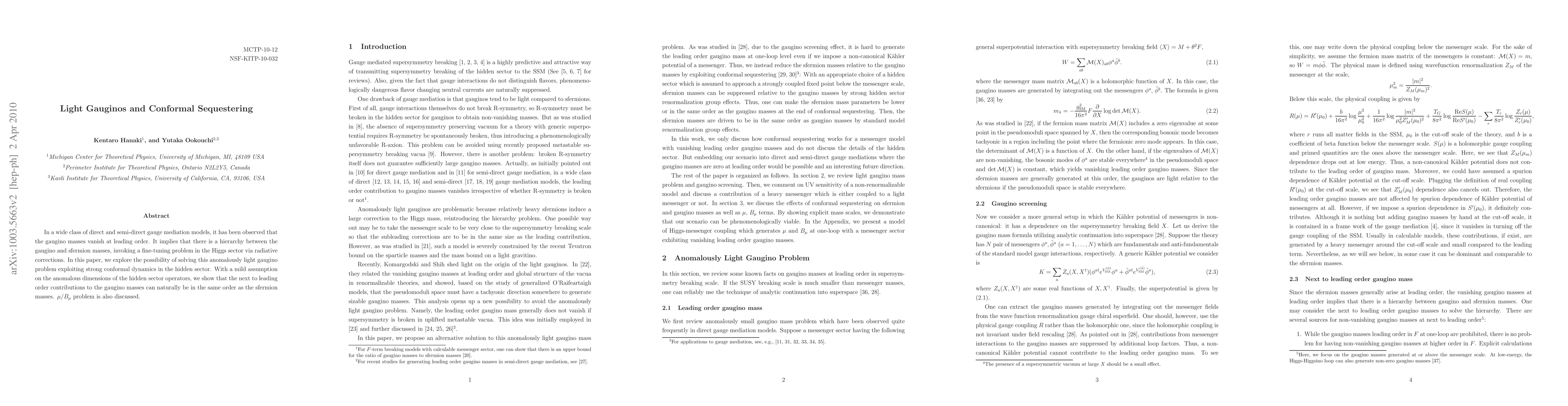 In a wide class of direct and semi-direct gauge mediation models, it has been observed that the gaugino masses vanish at leading order. It implies that there is a hierarchy between the gaugino and sfermion masses, invoking a fine-tuning problem in the Higgs sector via radiative corrections. In this paper, we explore the possibility of solving this anomalously light gaugino problem exploiting strong conformal dynamics in the hidden sector. With a mild assumption on the anomalous dimensions of the hidden sector operators, we show that the next to leading order contributions to the gaugino masses can naturally be in the same order as the sfermion masses. \mu/B_\mu problem is also discussed.