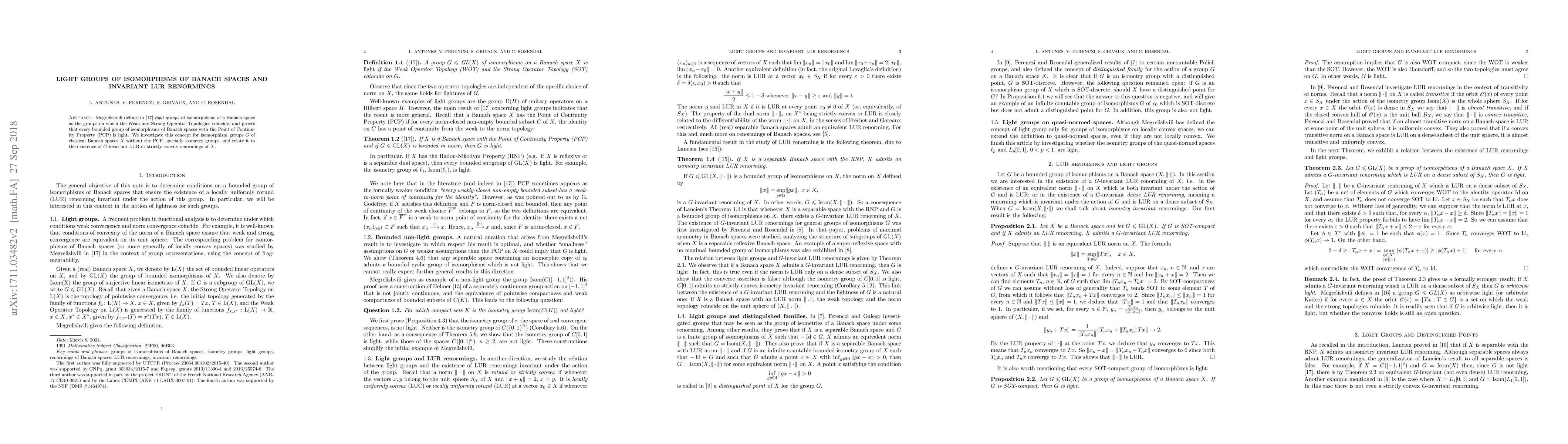 This paper explores the concept of "light groups" of isomorphisms for Banach spaces without the Point of Continuity Property, focusing on isometry groups, and investigates their connection to the existence of $G$-invariant LUR (locally uniformly rotund) or strictly convex renormings of the space.