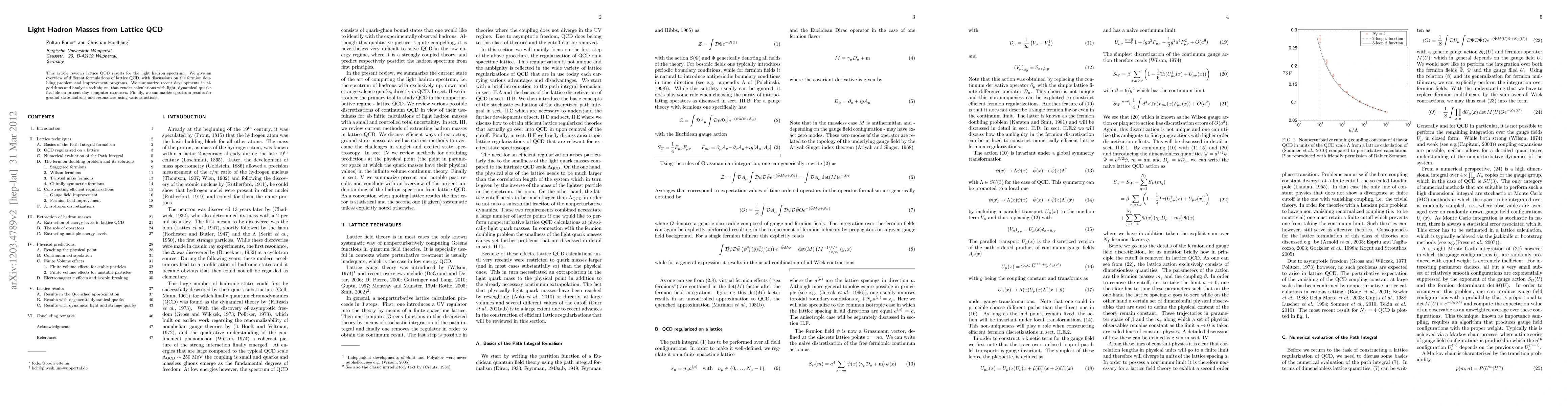 This paper reviews lattice QCD results for light hadron masses, discussing various formulations, addressing the fermion doubling problem, and summarizing recent algorithmic advancements that enable feasible calculations with dynamical quarks. It also presents spectrum results for ground state hadrons and resonances using different actions.
