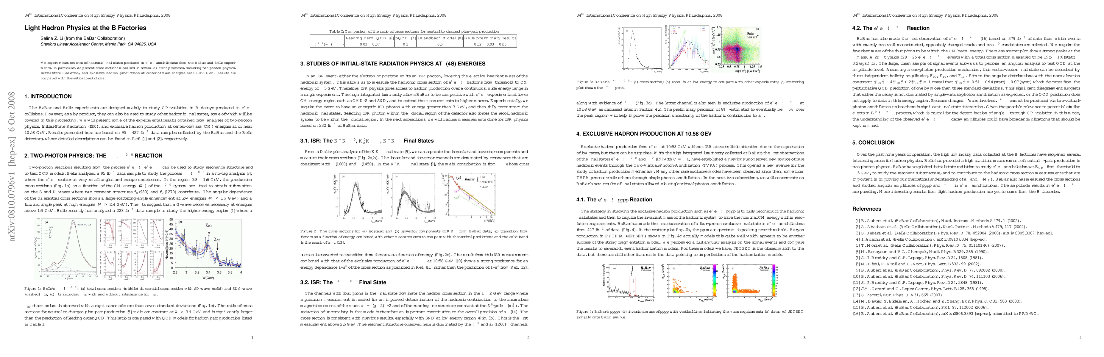 Researchers at BaBar and Belle experiments measured hadronic final states in e+e- annihilations, comparing cross sections to theoretical predictions at center-of-mass energies near 10.58 GeV.