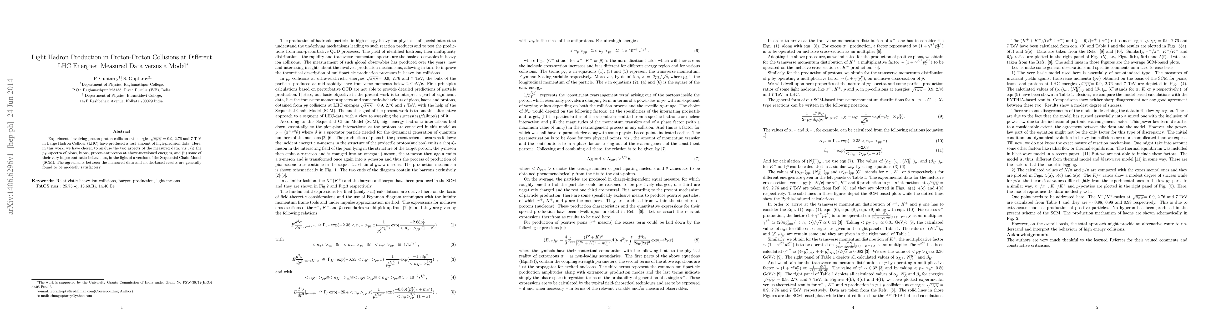 Experiments involving proton-proton collisions at energies $\sqrt{s_{NN}}$ = 0.9, 2.76 and 7 TeV in Large Hadron Collider (LHC) have produced a vast amount of high-precision data. Here, in this work, we have chosen to analyse the two aspects of the measured data, viz., (i) the $p_T$ -spectra of pions, kaons, proton-antiproton at above-mentioned energies, and (ii) some of their very important ratio-behaviours, in the light of a version of the Sequential Chain Model (SCM). The agreements between the measured data and model-based results are generally found to be modestly satisfactory.
