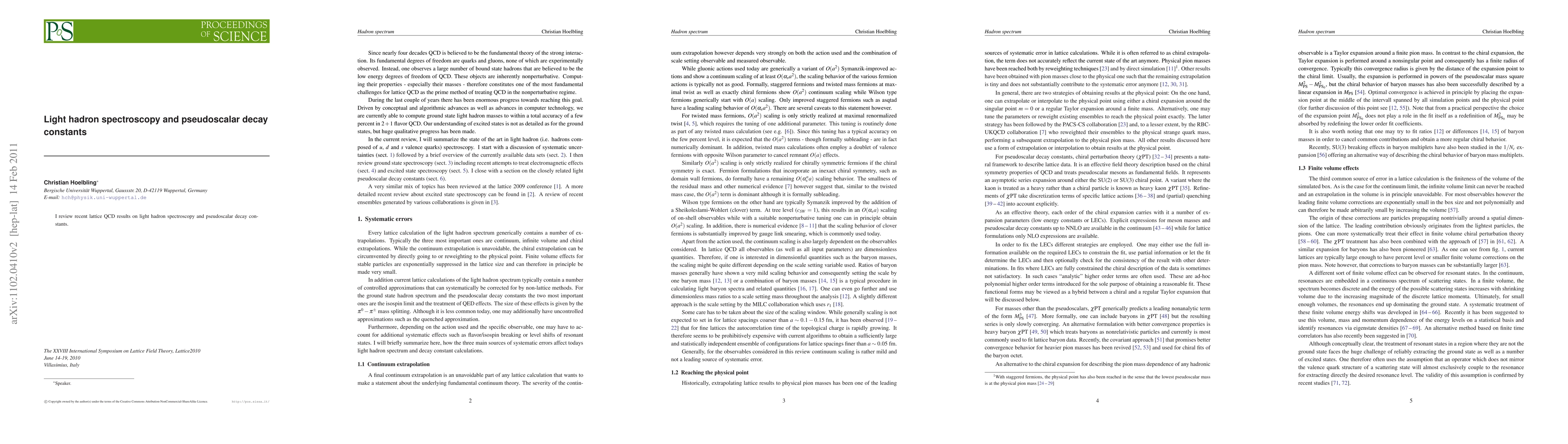 Summary: This paper reviews recent advancements in lattice QCD for understanding the spectroscopy of light hadrons and the precise measurement of pseudoscalar decay constants, providing insights into fundamental particle interactions.