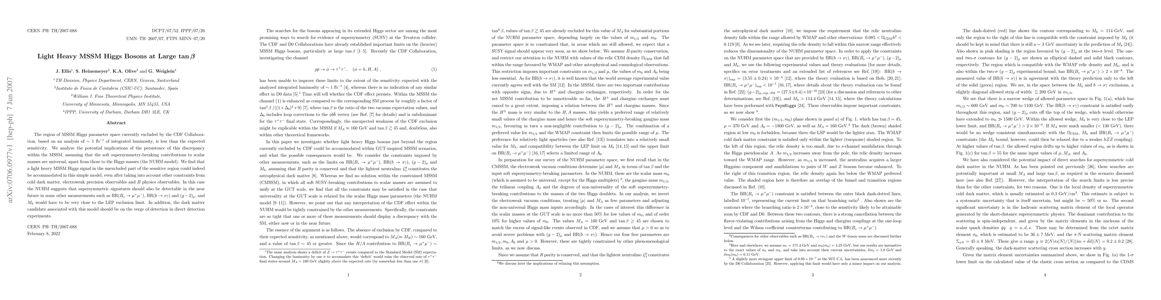 The region of MSSM Higgs parameter space currently excluded by the CDF Collaboration, based on an analysis of ~1 fb^-1 of integrated luminosity, is less than the expected sensitivity. We analyze the potential implications of the persistence of this discrepancy within the MSSM, assuming that the soft supersymmetry-breaking contributions to scalar masses are universal, apart from those to the Higgs masses (the NUHM model). We find that a light heavy MSSM Higgs signal in the unexcluded part of the sensitive region could indeed be accommodated in this simple model, even after taking into account other constraints from cold dark matter, electroweak precision observables and B physics observables. In this case the NUHM suggests that supersymmetric signatures should also be detectable in the near future in some other measurements such as BR(B_s -> mu+ mu-), BR(b -> s gamma) and (g-2)_mu, and M_h would have to be very close to the LEP exclusion limit. In addition, the dark matter candidate associated with this model should be on the verge of detection in direct detection experiments.