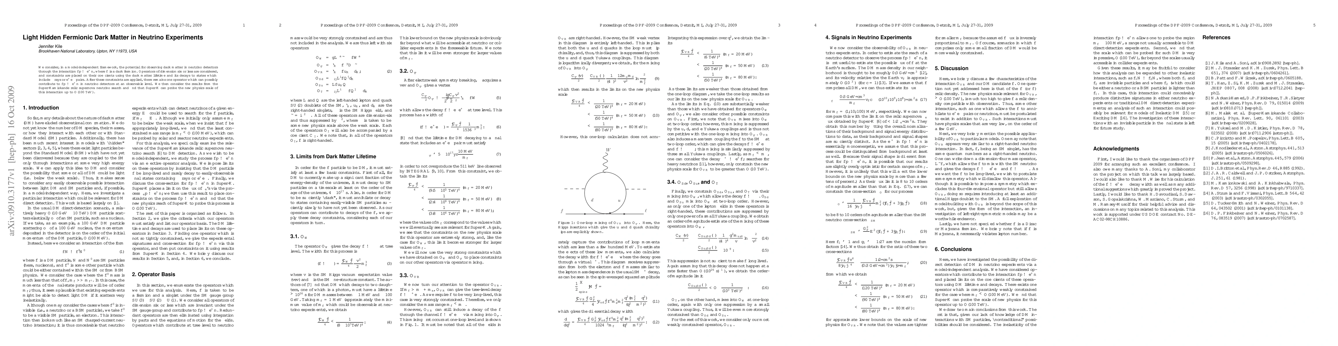 This paper explores the possibility of detecting hidden fermionic dark matter in neutrino experiments via the interaction $\bar{f} p \to e^+ n$. It identifies a single operator that could potentially lead to observable effects in neutrino detectors, and finds that Super-Kamiokande can probe this interaction up to a new physics scale of $O(100\mbox{ TeV})$.