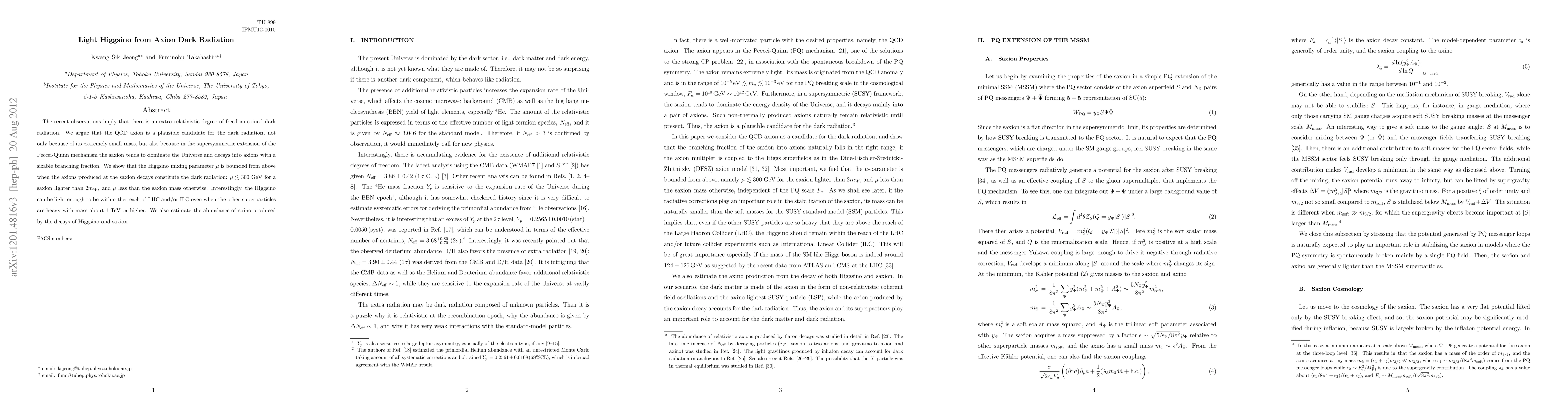 Research suggests that axion dark radiation could be explained by a light Higgsino particle with a mass limit of 300 GeV, potentially detectable at the LHC or ILC.