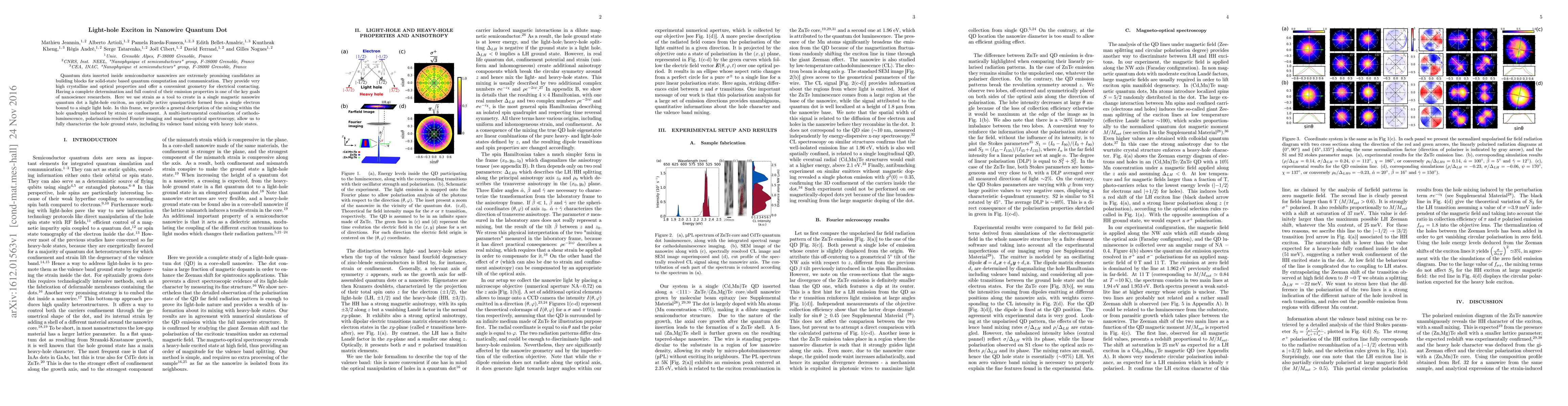 Quantum dots inserted inside semiconductor nanowires are extremely promising candidates as building blocks for solid-state based quantum computation and communication. They provide very high crystalline and optical properties and offer a convenient geometry for electrical contacting. Having a complete determination and full control of their emission properties is one of the key goals of nanoscience researchers. Here we use strain as a tool to create in a single magnetic nanowire quantum dot a light-hole exciton, an optically active quasiparticle formed from a single electron bound to a single light hole. In this frame, we provide a general description of the mixing within the hole quadruplet induced by strain or confinement. A multi-instrumental combination of cathodoluminescence, polarisation-resolved Fourier imaging and magneto-optical spectroscopy, allow us to fully characterize the hole ground state, including its valence band mixing with heavy hole states.