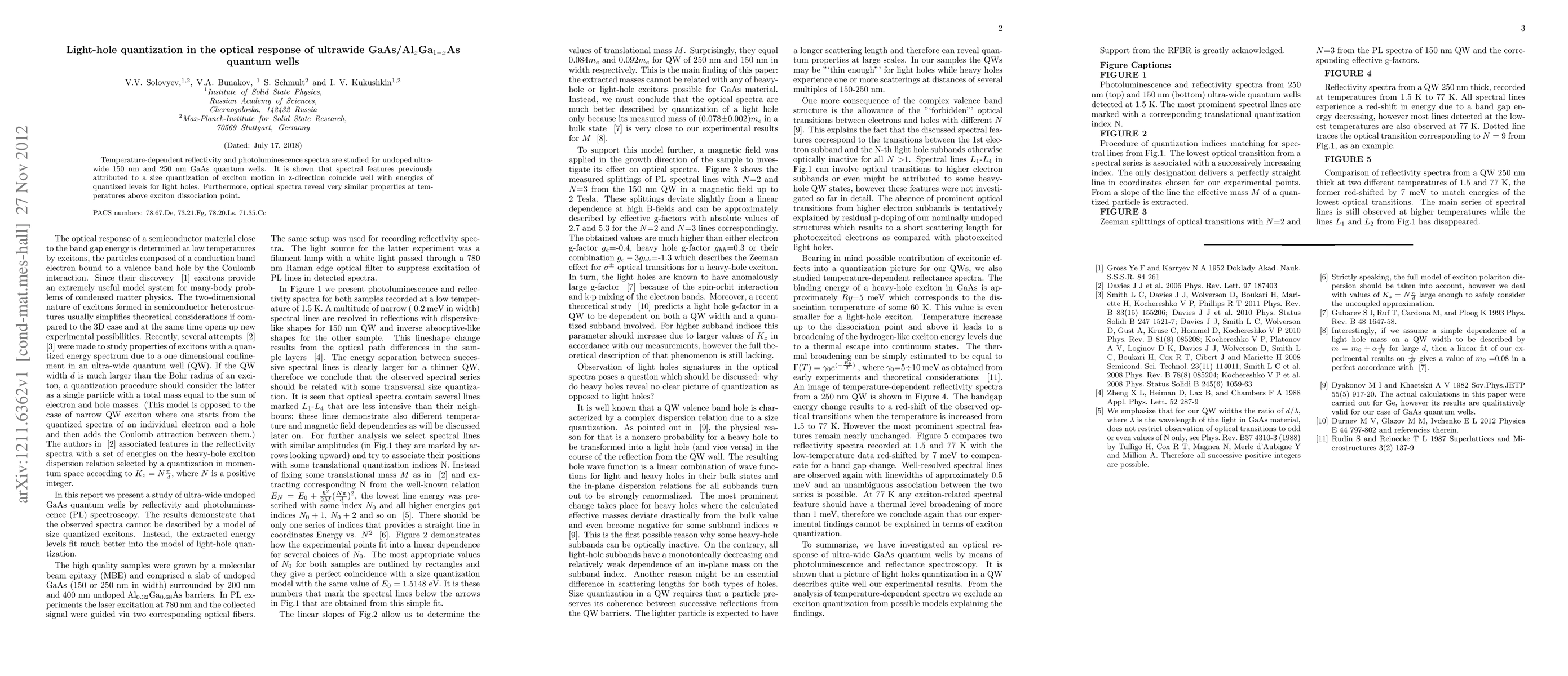 Temperature-dependent reflectivity and photoluminescence spectra are studied for undoped ultra-wide 150 nm and 250 nm GaAs quantum wells. It is shown that spectral features previously attributed to a size quantization of exciton motion in z-direction coincide well with energies of quantized levels for light holes. Furthermore, optical spectra reveal very similar properties at temperatures above exciton dissociation point.