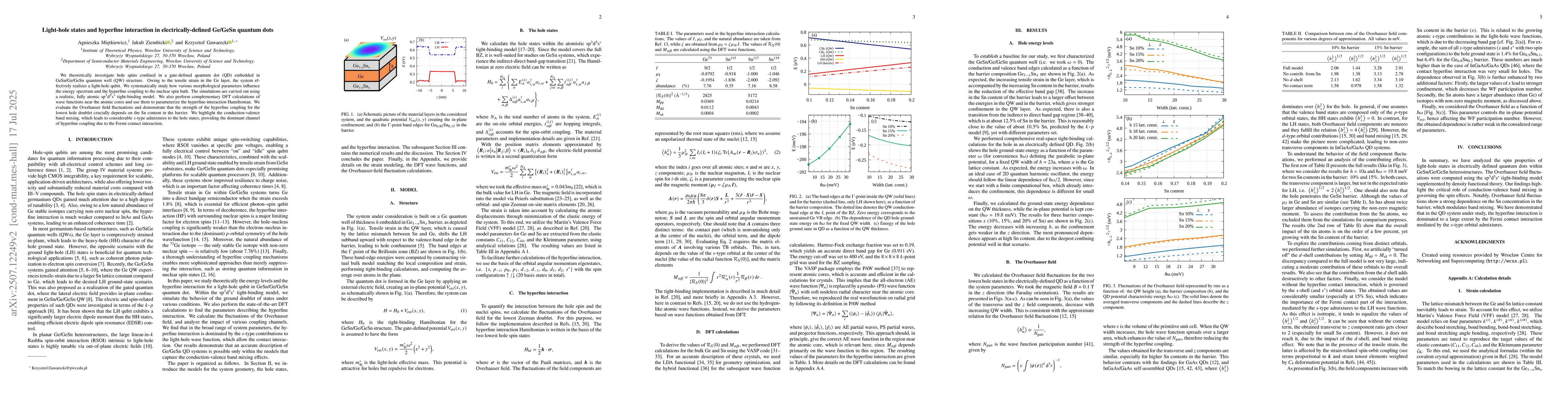 The paper presents a comprehensive theoretical analysis of hole spins in electrically-defined quantum dots within GeSn/Ge/GeSn heterostructures, utilizing sp³d⁵s⁰ tight-binding models and DFT calculations to compute Overhauser field fluctuations and understand the hyperfine interaction.