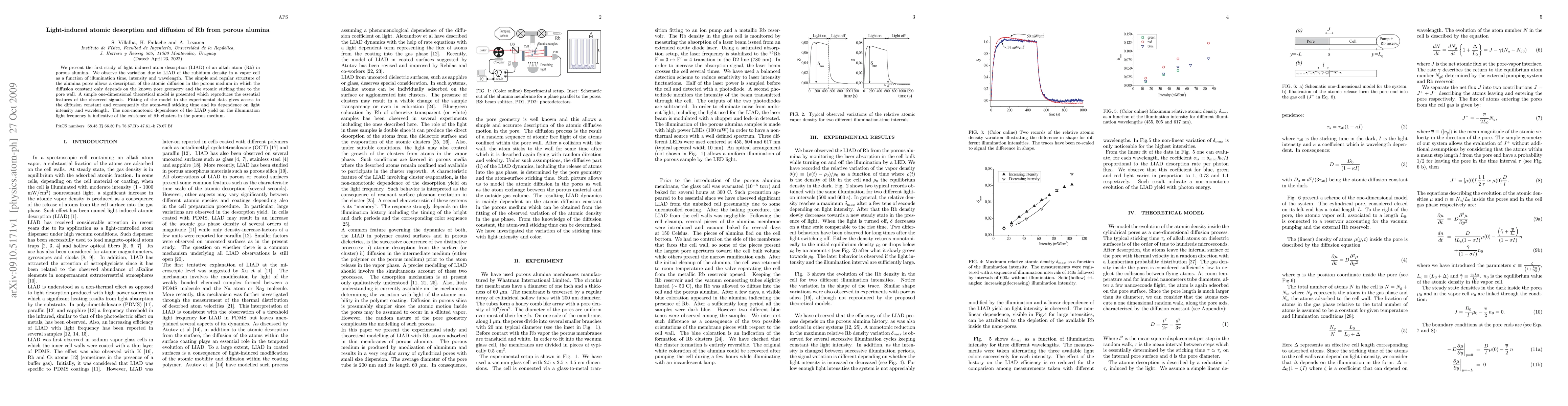 This study investigates light-induced desorption of rubidium atoms from porous alumina, observing changes in rubidium density with illumination time, intensity, and wavelength. A theoretical model describes atomic diffusion in the alumina pores, revealing the atom-wall sticking time and its dependence on light parameters, while indicating the presence of rubidium clusters through the non-monotonic desorption yield.