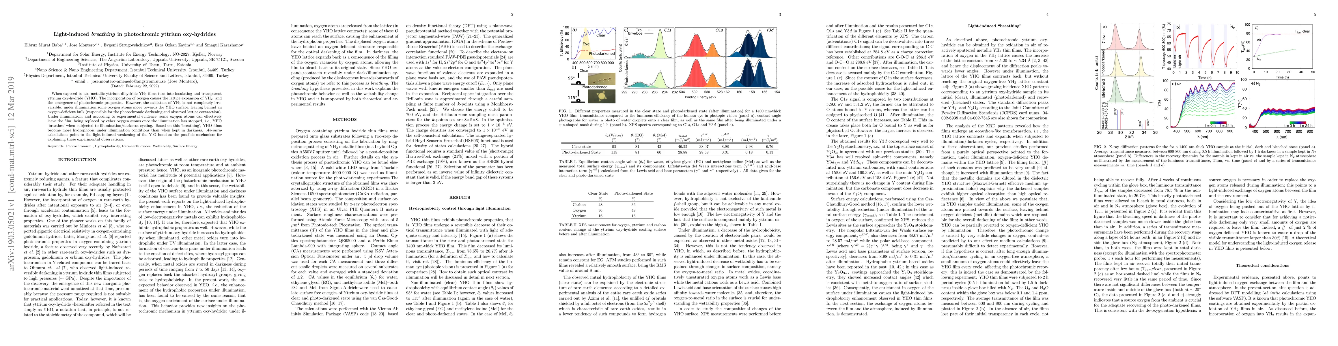 Yttrium oxy-hydride films exhibit 'breathing' when illuminated and darkened, with oxygen atoms moving in and out of the film. This breathing leads to improved hydrophobicity under illumination conditions.