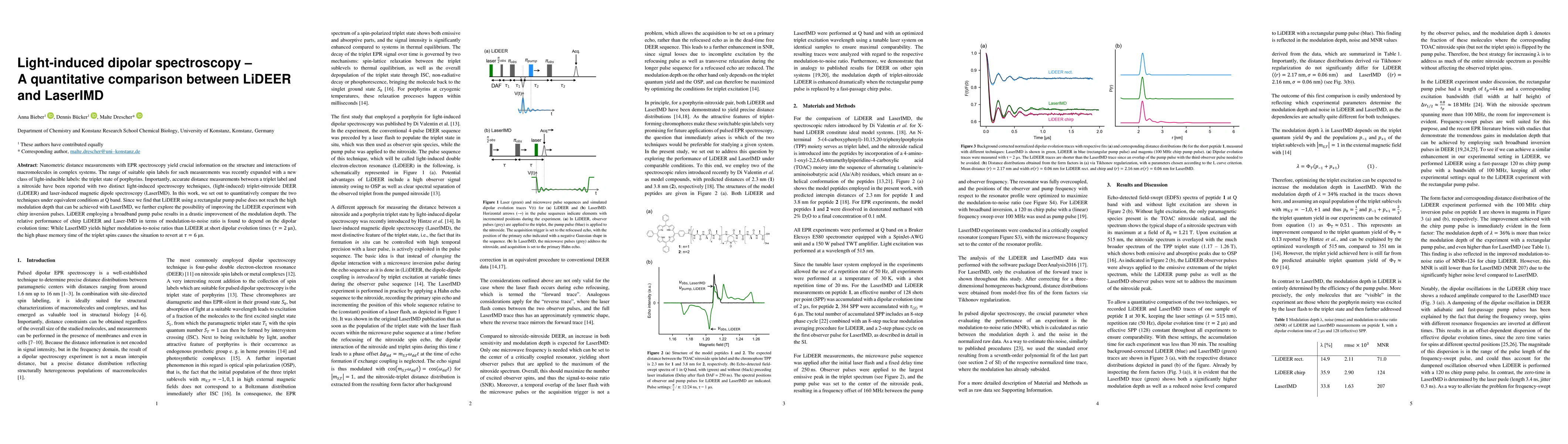 Nanometric distance measurements with EPR spectroscopy yield crucial information on the structure and interactions of macromolecules in complex systems. The range of suitable spin labels for such measurements was recently expanded with a new class of light-inducible labels: the triplet state of porphyrins. Importantly, accurate distance measurements between a triplet label and a nitroxide have been reported with two distinct light-induced spectroscopy techniques, (light-induced) triplet-nitroxide DEER (LiDEER) and laser-induced magnetic dipole spectroscopy (LaserIMD). In this work, we set out to quantitatively compare the two techniques under equivalent conditions at Q band. Since we find that LiDEER using a rectangular pump pulse does not reach the high modulation depth that can be achieved with LaserIMD, we further explore the possibility of improving the LiDEER experiment with chirp inversion pulses. LiDEER employing a broadband pump pulse results in a drastic improvement of the modulation depth. The relative performance of chirp LiDEER and Laser-IMD in terms of modulation-to-noise ratio is found to depend on the dipolar evolution time: While LaserIMD yields higher modulation-to-noise ratios than LiDEER at short dipolar evolution times ({\tau}=2 {\mu}s), the high phase memory time of the triplet spins causes the situation to revert at {\tau}=6 {\mu}s.