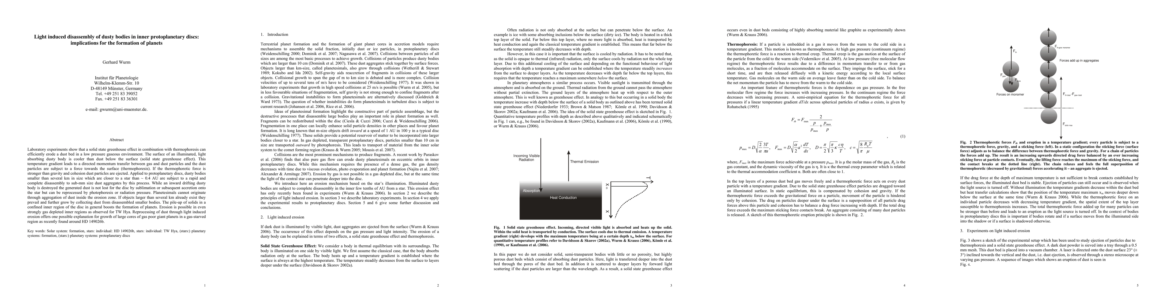 Laboratory experiments show that a solid-state greenhouse effect in combination with thermophoresis can efficiently erode a dust bed in a low-pressure gaseous environment. The surface of an illuminated, light absorbing dusty body is cooler than the dust below the surface (solidstate greenhouse effect). This temperature gradient leads to a directed momentum transfer between gas and dust particles and the dust particles are subject to a force towards the surface(thermophoresis). If the thermophoretic force is stronger than gravity and cohesion, dust particles are ejected. Applied to protoplanetary discs, dusty bodies smaller than several kilometres in size which are closer to a star than about 0.4 au are subject to a rapid and complete disassembly to submillimetre size dust aggregates by this process. While an inward-drifting dusty body is destroyed, the generated dust is not lost for the disc by sublimation or subsequent accretion on to the star but can be reprocessed by photophoresis or radiation pressure. Planetesimals cannot originate through aggregation of dust inside the erosion zone. If objects larger than several kilometres already exist, they prevail and further grow by collecting dust from disassembled smaller bodies. The pile-up of solids in a confined inner region of the disc, in general, boosts the formation of planets. Erosion is possible in even strongly gas-depleted inner regions as observed for TW Hya. Reprocessing of dust through light-induced erosion offers one possible explanation for growth of large cores of gas-poor giant planets in a gas-starved region as recently found around HD 149026b.