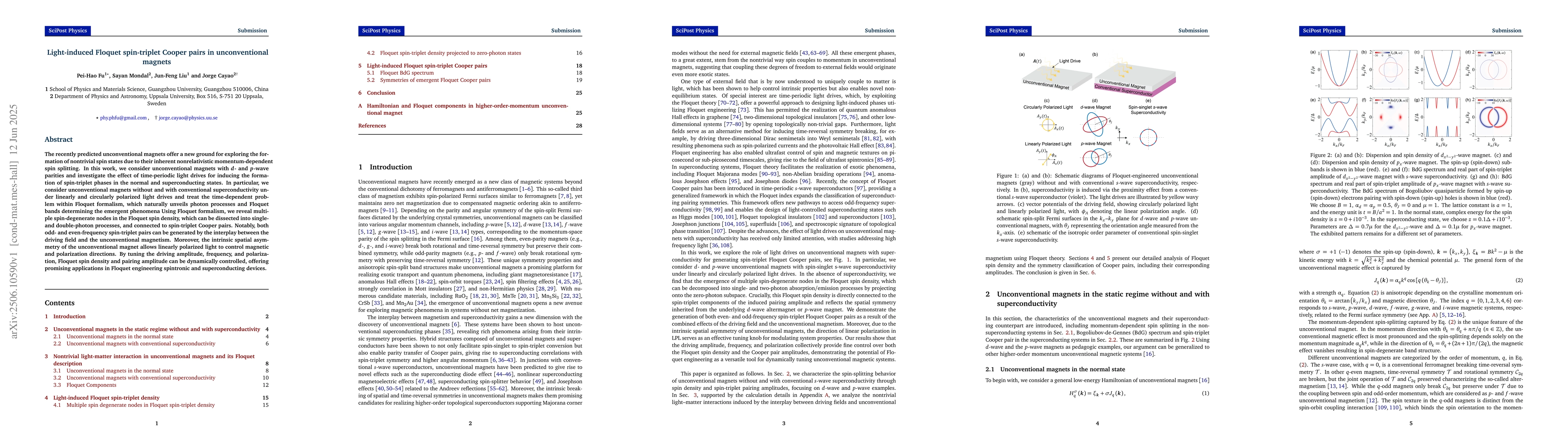 Researchers used Floquet formalism to study how light drives can create spin-triplet Cooper pairs in unconventional magnets, offering a new way to control magnetic properties.