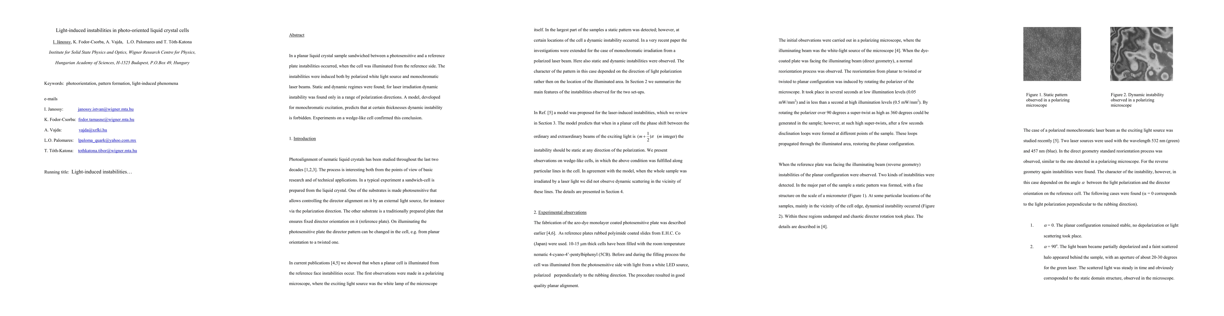 Researchers found that light-induced instabilities occur in photo-oriented liquid crystal cells when illuminated from one side, with dynamic instability only observed at certain polarization angles. This finding was confirmed using a model and experiments on a wedge-like cell.