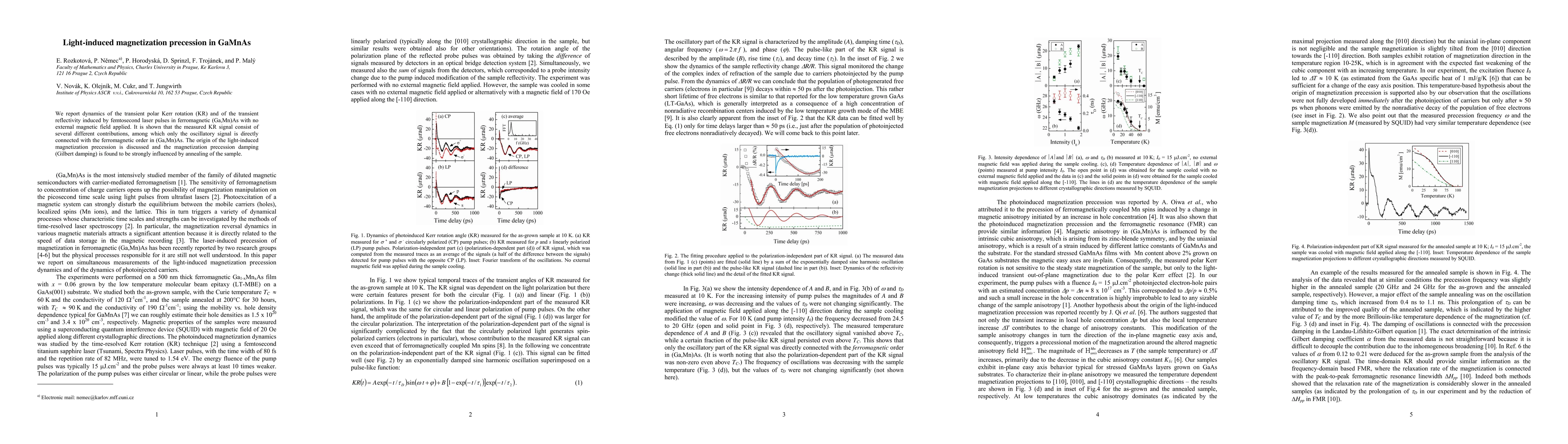 This paper investigates the dynamics of light-induced magnetization precession in (Ga,Mn)As using transient polar Kerr rotation and reflectivity. The oscillatory Kerr rotation signal is linked to ferromagnetic order, and the study finds that Gilbert damping of magnetization precession is significantly affected by sample annealing.